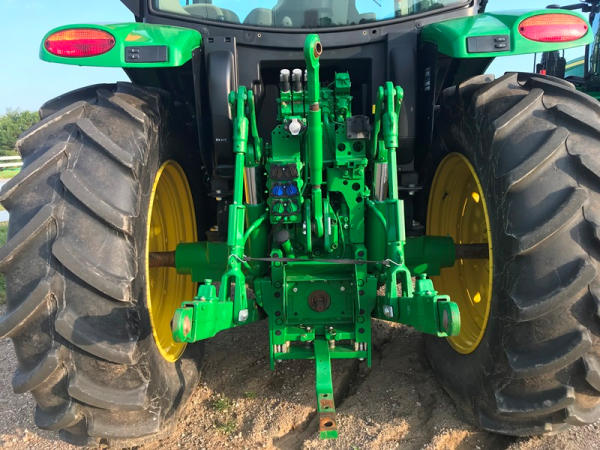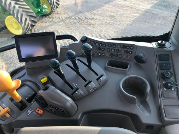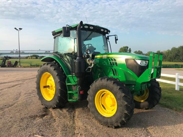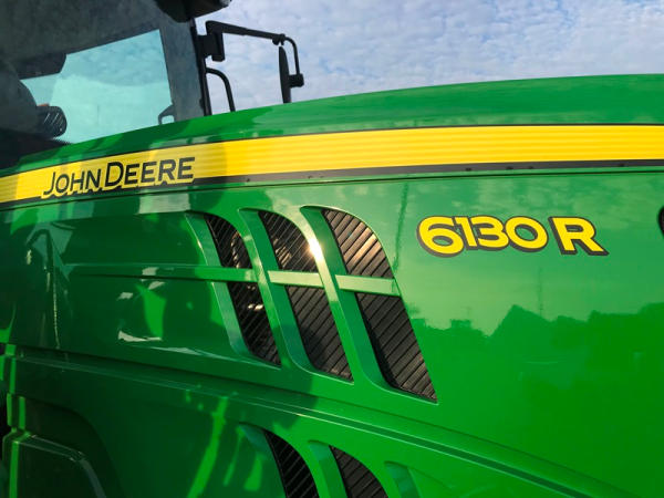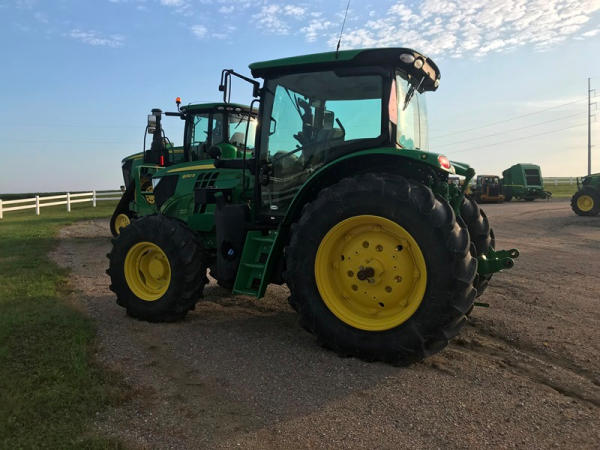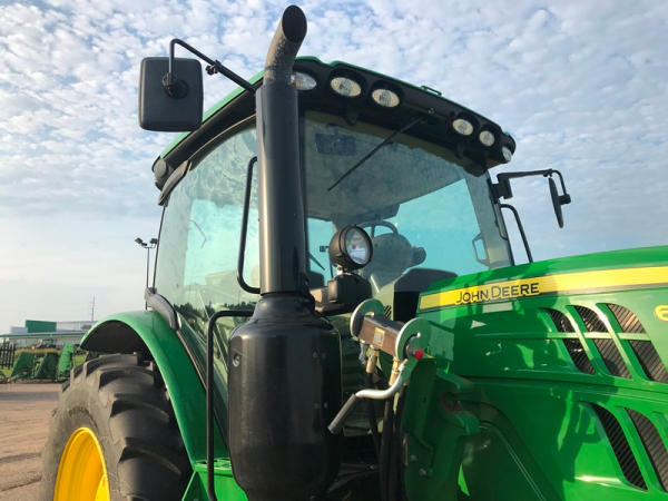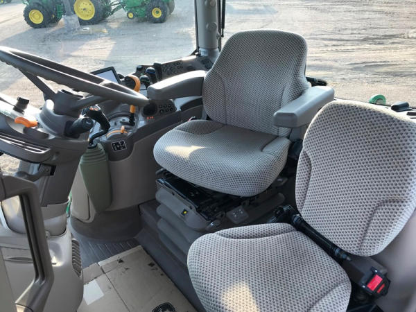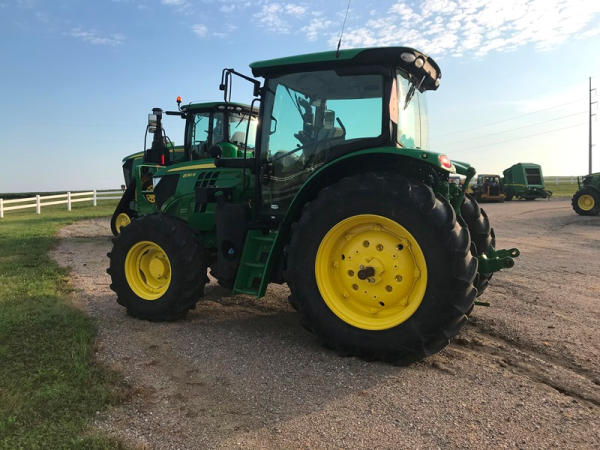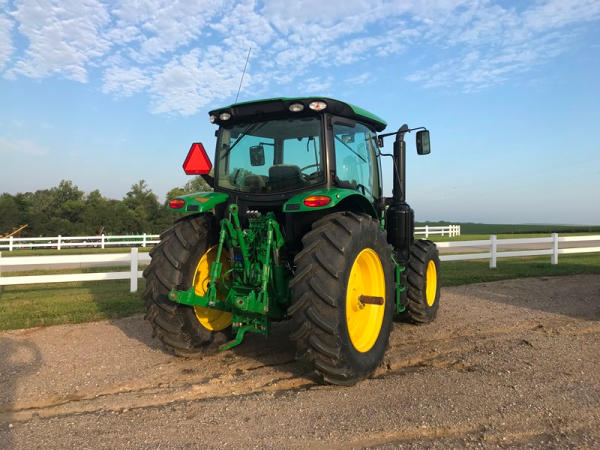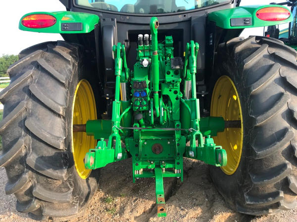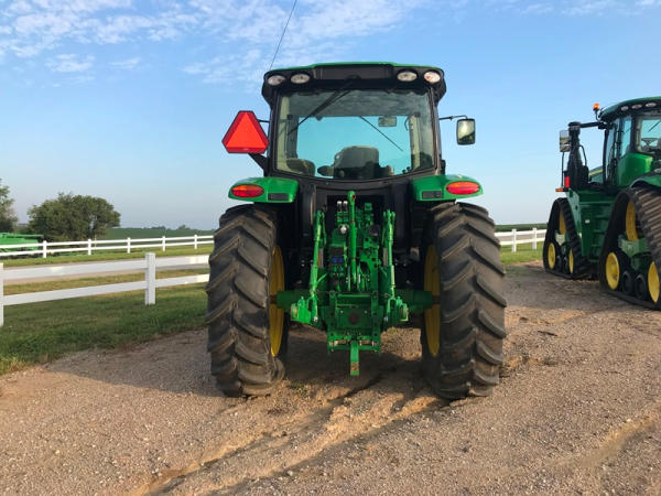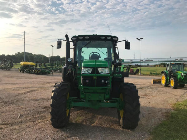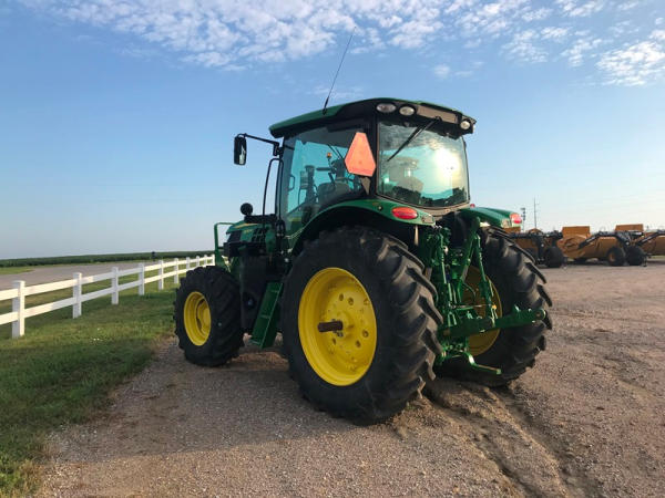 2017 John Deere 6130R MFWD Tractor (TR9001), diesel engine (130HP), 24 speed auto quad plus ecoshift, cab, heat, air conditioning, Am/Fm radio, economy seat, loader ready, joystick, 3 SCV's, 540/1000 PTO, adjustable cast wheels, 460/85R38 rear tires, 380/85R24 front tires, ISUBUS ready, GreenStar ready, JD Link capable, 4100 processor, 7" CommandCenter Display, shows 707.4 hours.
