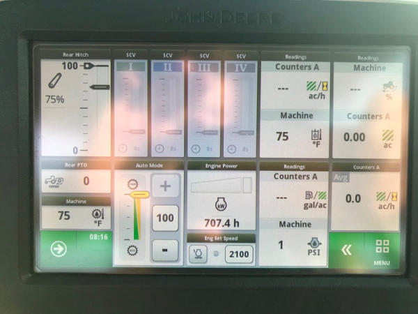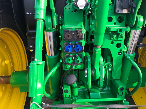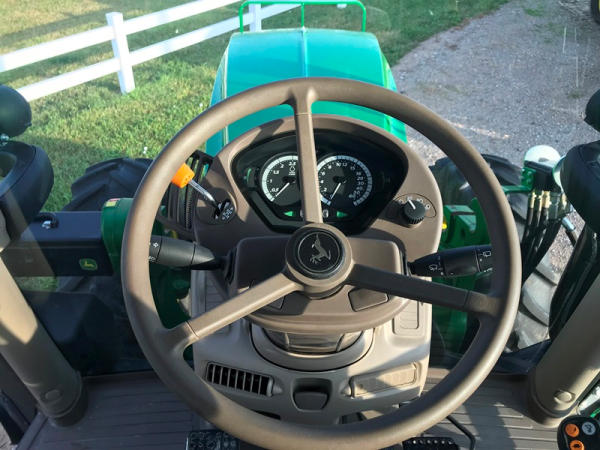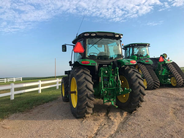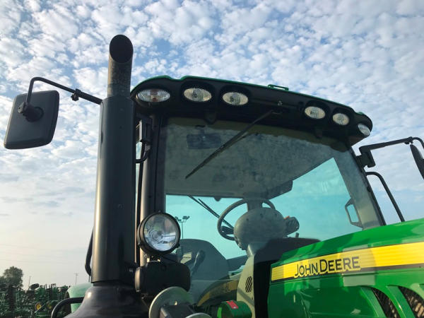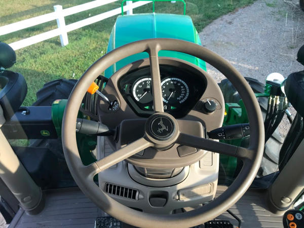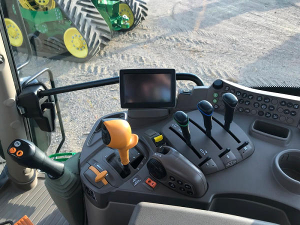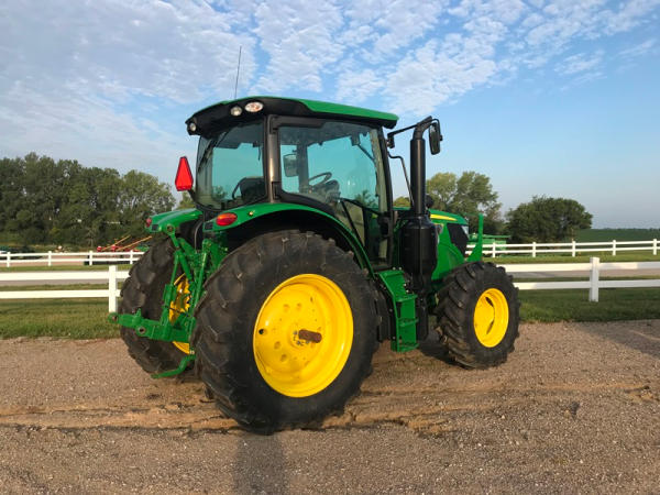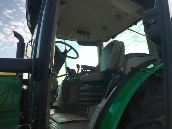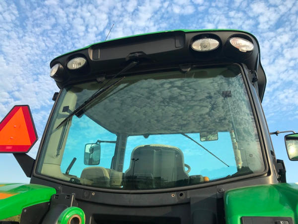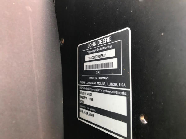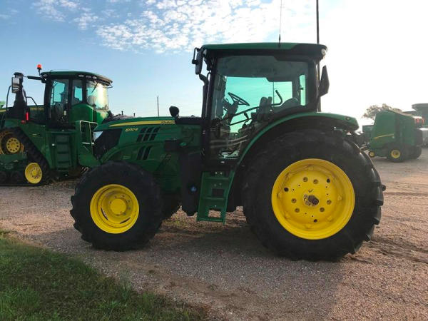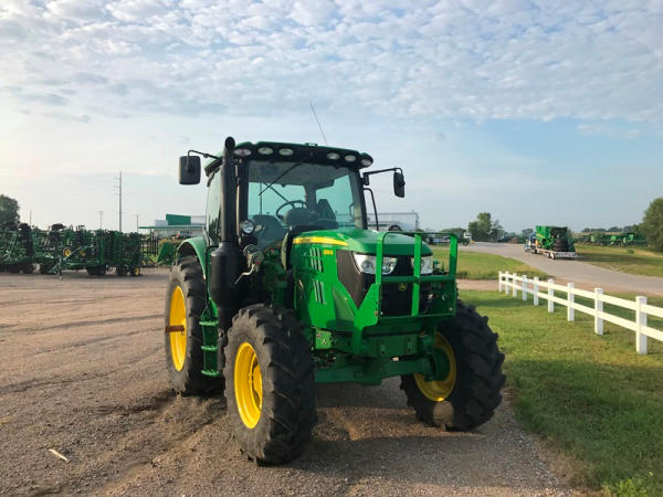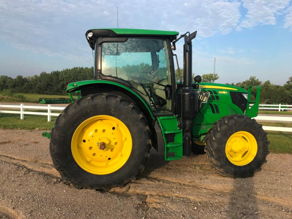 2017 John Deere 6130R MFWD Tractor (TR9001), diesel engine (130HP), 24 speed auto quad plus ecoshift, cab, heat, air conditioning, Am/Fm radio, economy seat, loader ready, joystick, 3 SCV's, 540/1000 PTO, adjustable cast wheels, 460/85R38 rear tires, 380/85R24 front tires, ISUBUS ready, GreenStar ready, JD Link capable, 4100 processor, 7" CommandCenter Display, shows 707.4 hours.