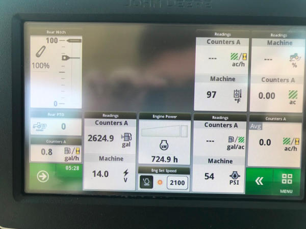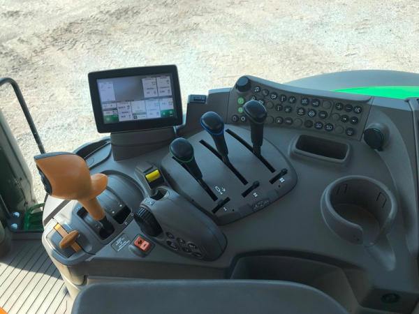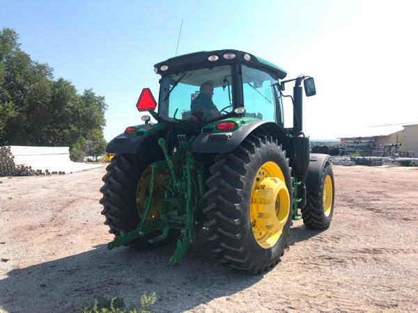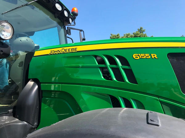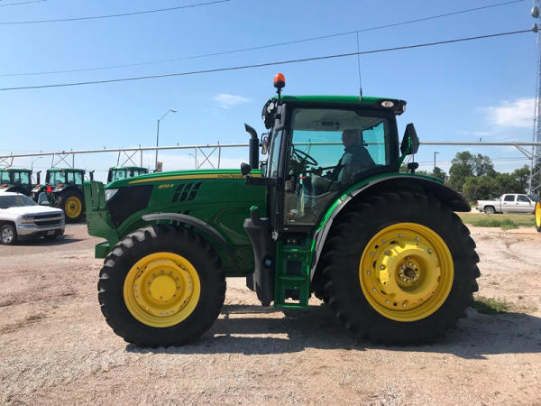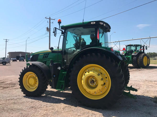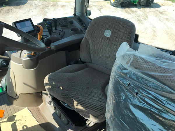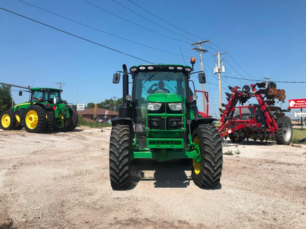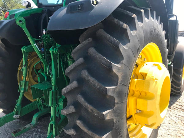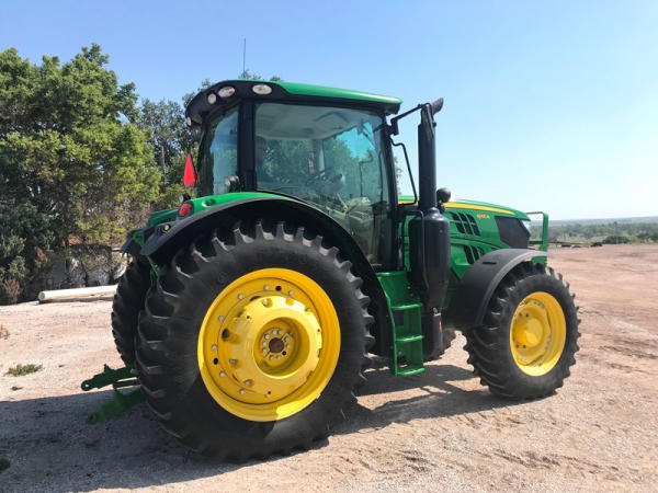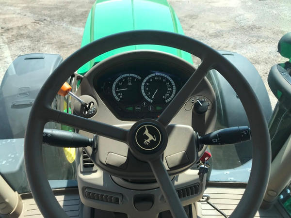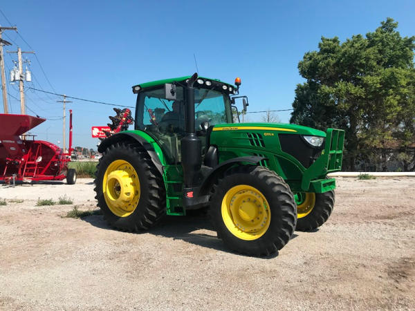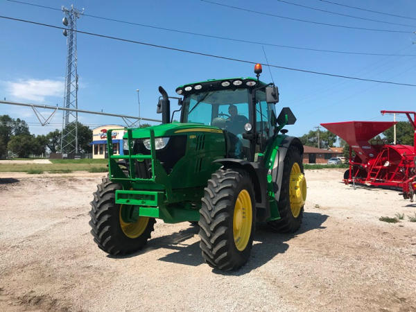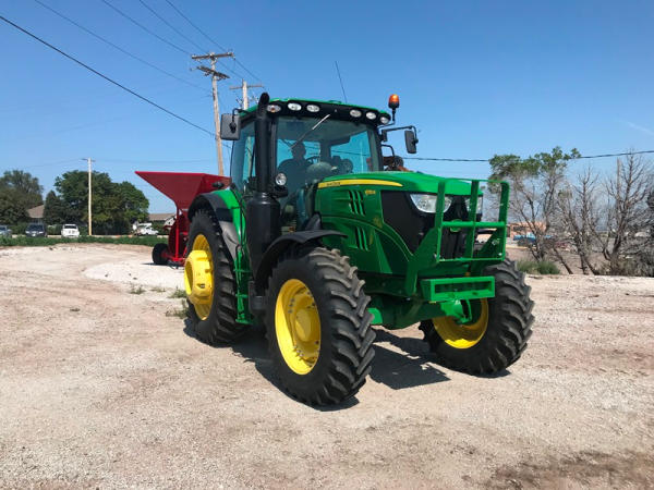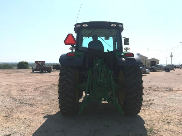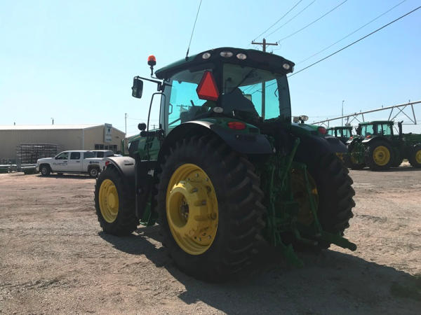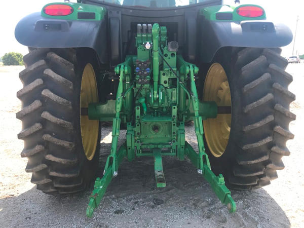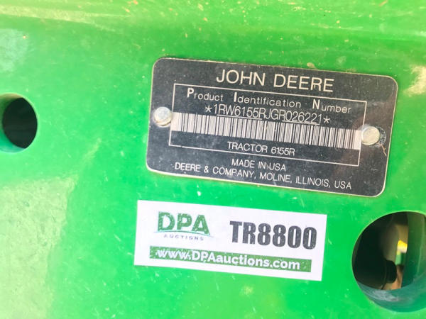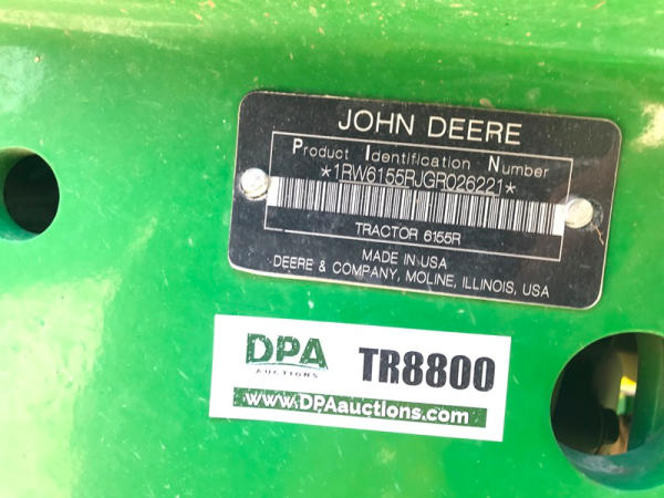 2016 John Deere 6155R MFWD Tractor (TR8800), diesel engine, 16 speed powerquad plus, cab, heat, air conditioning, Am/Fm radio, deluxe lighting package, 3 SCV's, 540/1000 PTO, 380/85R30 front tires, 480/80R42 rear tires, adjustable cast wheels, front and rear fenders, cold weather package, 4100 processor, GreenStar ready, 7" CommandCenter display, shows 724 hours.