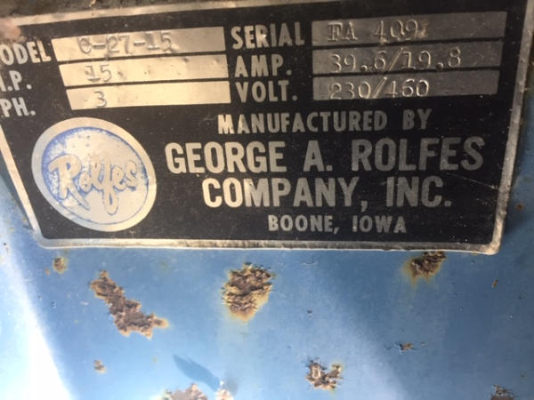 (2) Aeration Fans (NP8908), (2) 15HP, 1725 RPM.