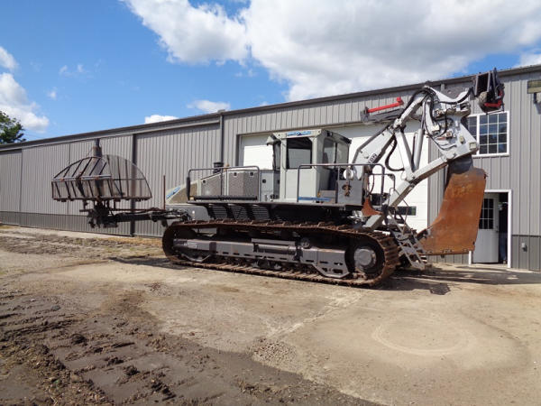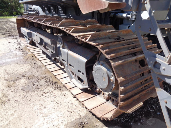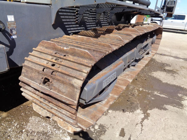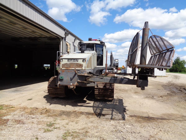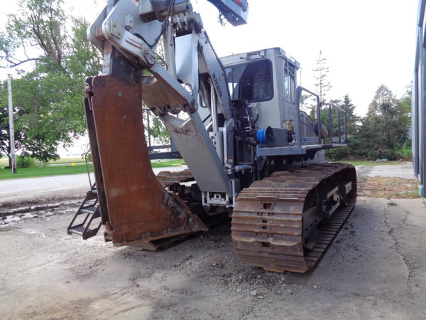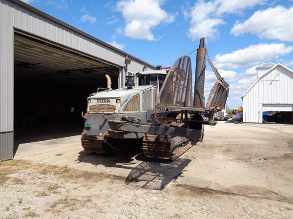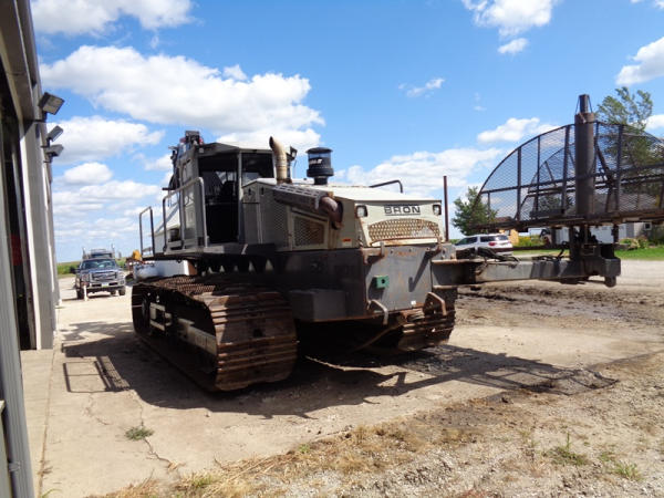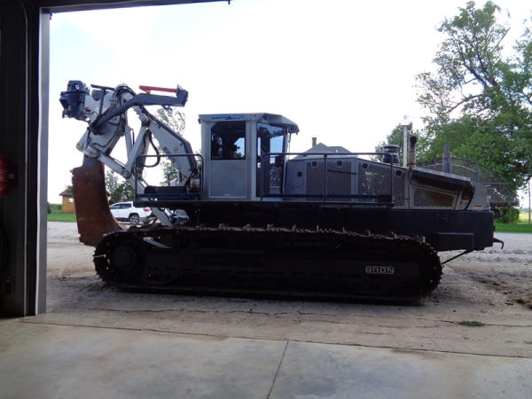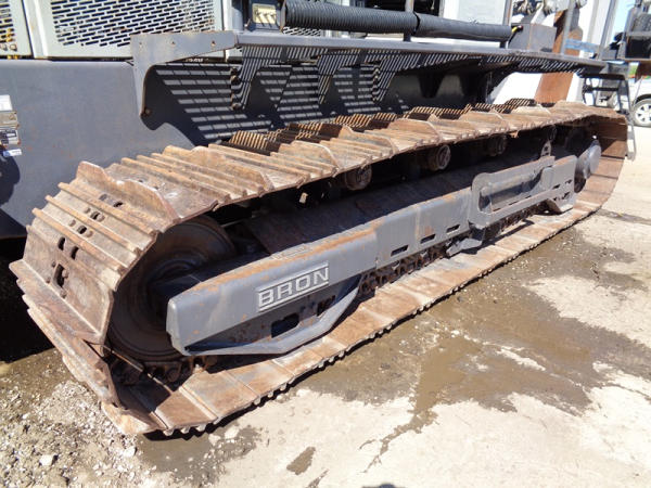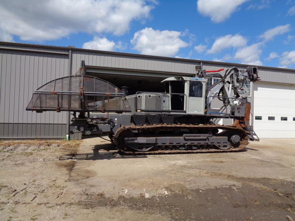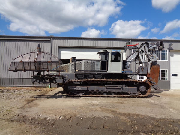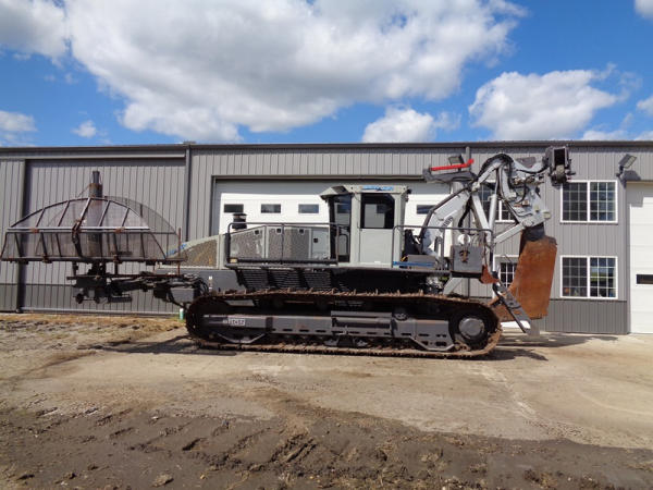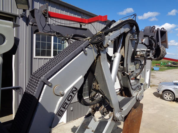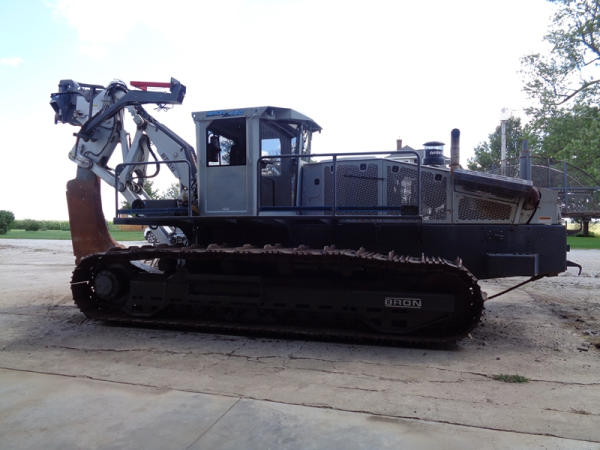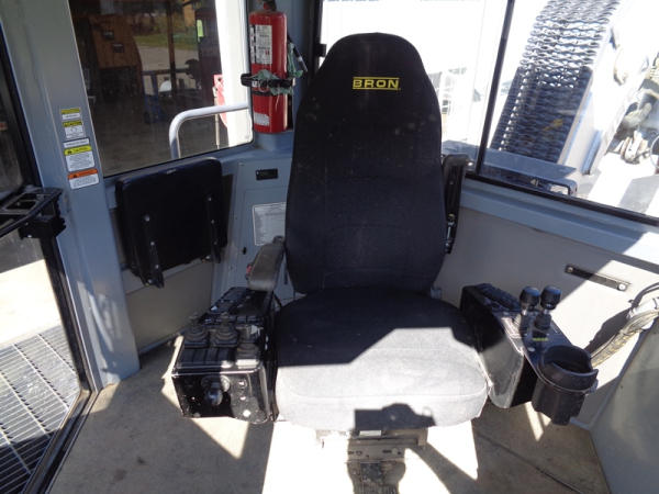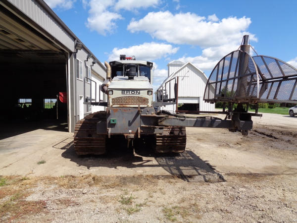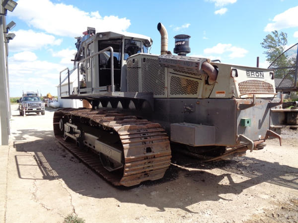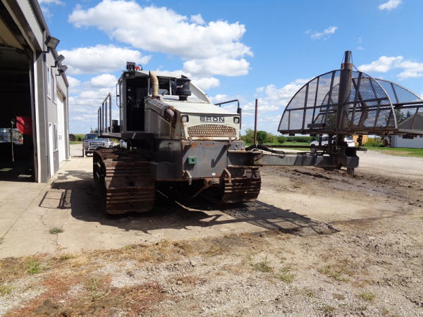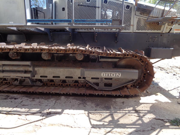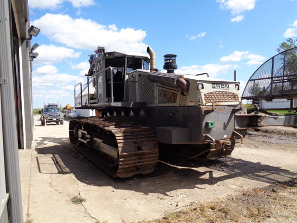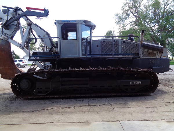 2013 Bron 450 Self-Propelled Drainage Plow (PZ2829), cab, Cat C13 Acert diesel engine (440HP), heat, air conditioning, Am/Fm CD stereo, 3' oscillating tracks, auto greaser, plow Model 750 DL (S/N 13-M-02-1654), on board spool, auto side hill leveling system, 6" boot with cutter crusher, 8" boot, 12" boot, Frost picks, plow controls are mounted on both sides of the swivel high back chair, tow cable, shows 3,743 hours.