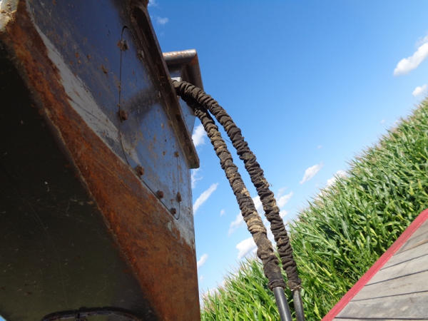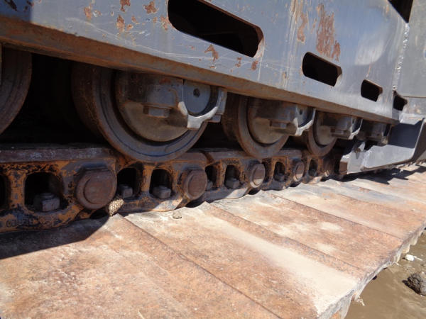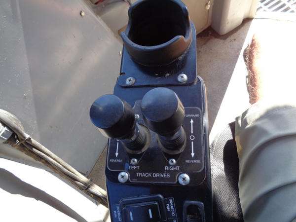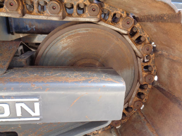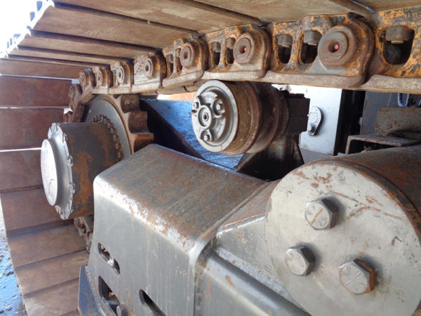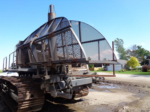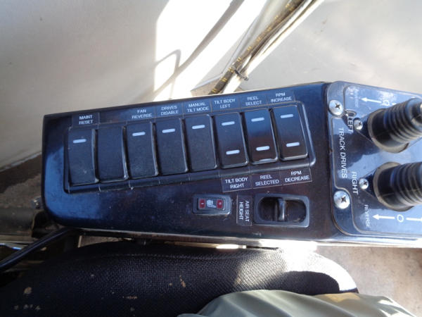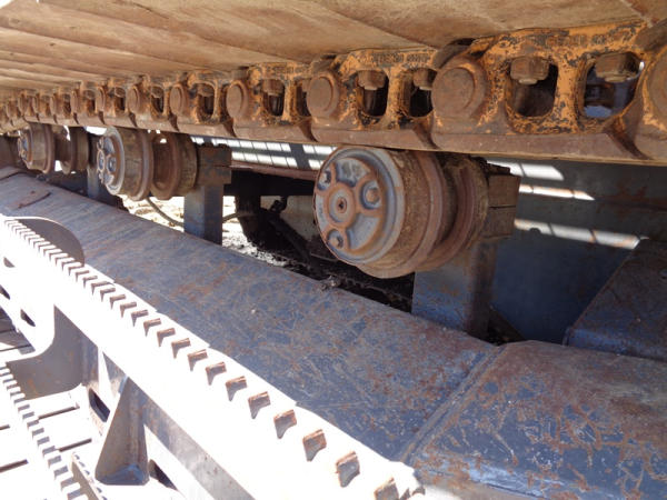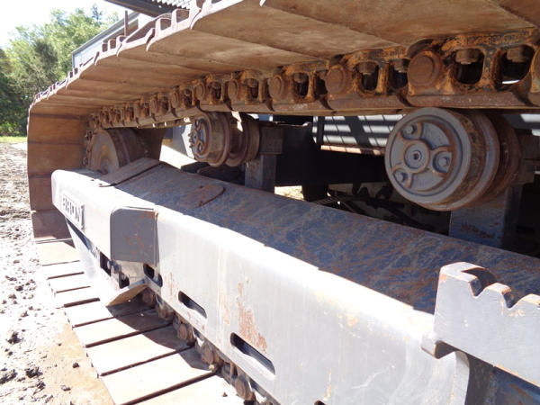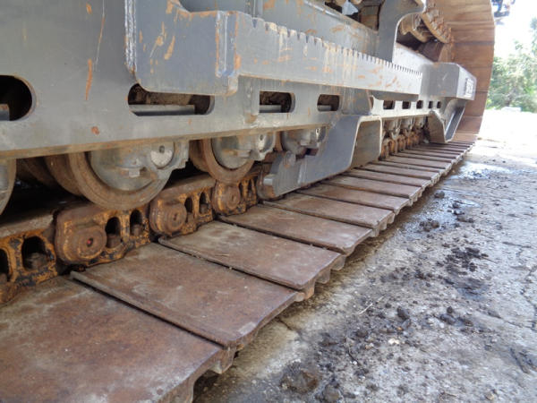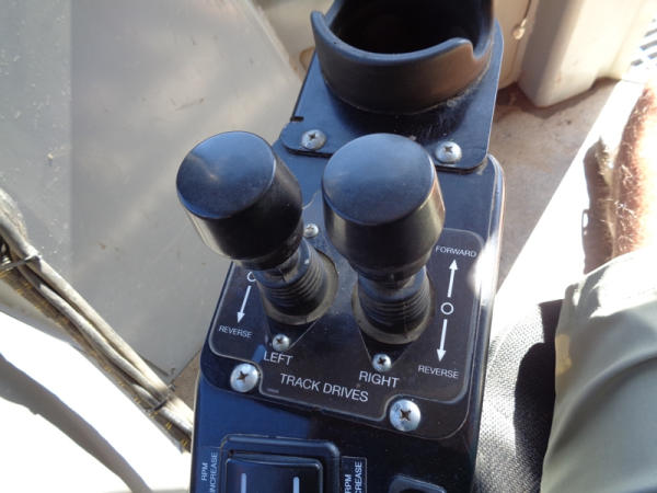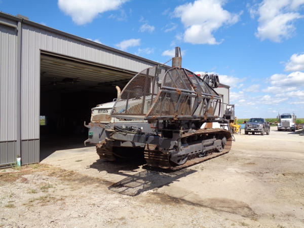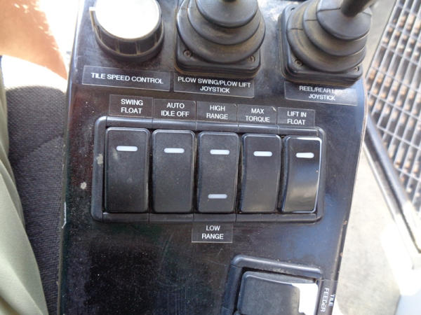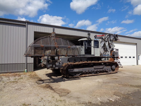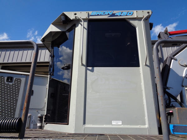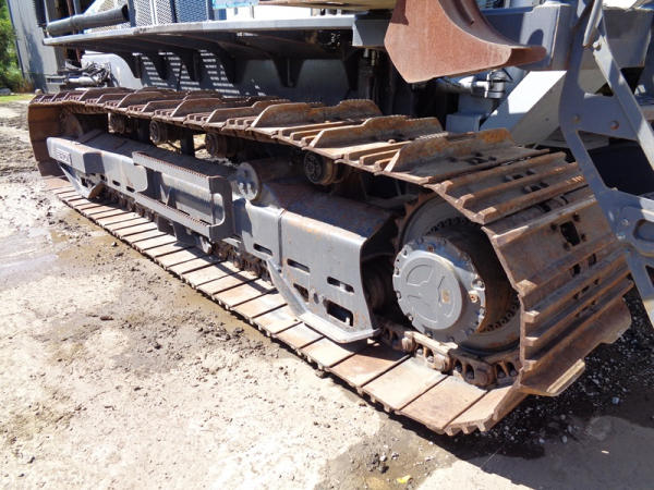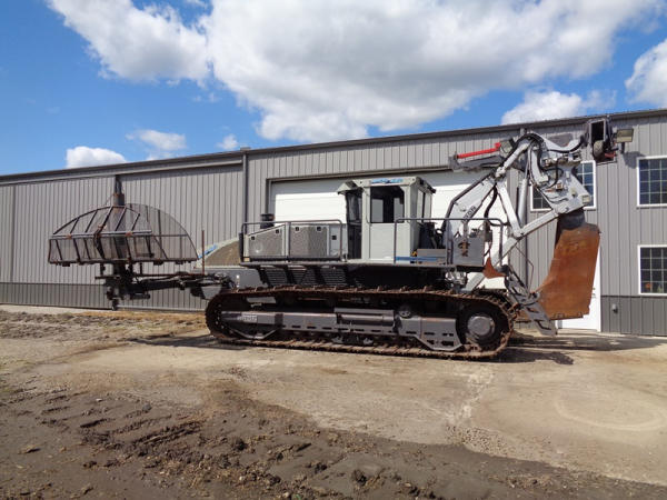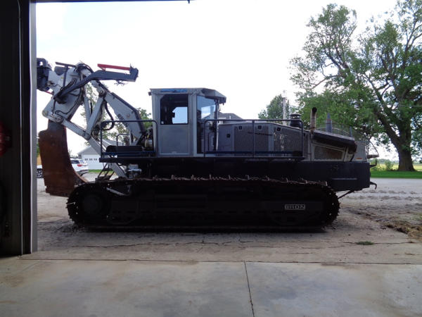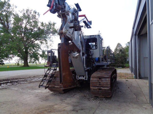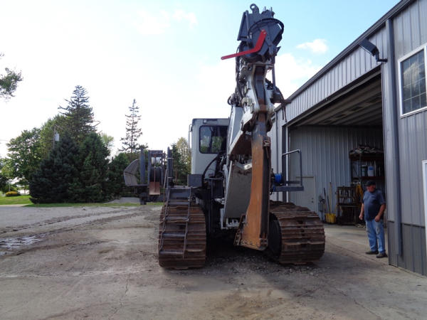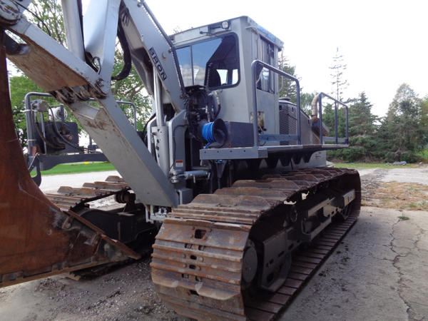 2013 Bron 450 Self-Propelled Drainage Plow (PZ2829), cab, Cat C13 Acert diesel engine (440HP), heat, air conditioning, Am/Fm CD stereo, 3' oscillating tracks, auto greaser, plow Model 750 DL (S/N 13-M-02-1654), on board spool, auto side hill leveling system, 6" boot with cutter crusher, 8" boot, 12" boot, Frost picks, plow controls are mounted on both sides of the swivel high back chair, tow cable, shows 3,743 hours.