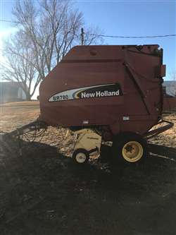 2007 New Holland BR780A (JJ175), about 11,000 bales, endless belts, 4 bar extra sweep pick up, expeller roll, net and twine wrap, lower belt guide and some general TLC.