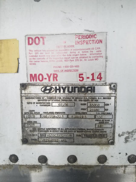 2007 Hyundai Reefer Trailer (ED1106), 53 foot Thermo King, Air Ride suspension, swing door, LP22.5 tires.
