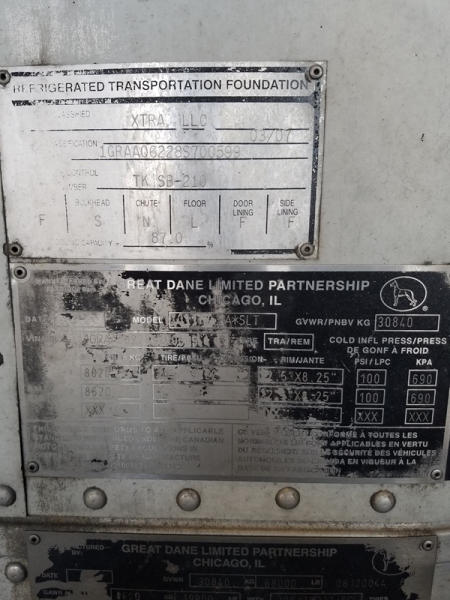 2008 Great Dane Reefer Trailer (ED1107), 53 foot Thermo King, Air Ride suspension, swing door, LP22.5 tires.