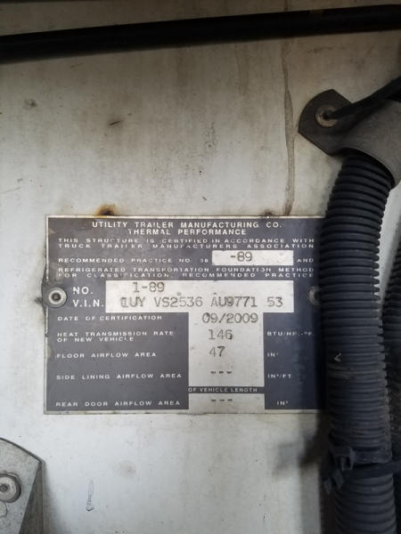 2010 Utility Reefer Trailer (ED1120), 53 foot Carrier, Air Ride Suspension, swing door, LP22.5 tires.