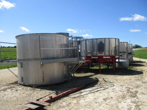 M-C Grain Dryer (DR3255), model 101275 Tower Series, vertical grain dryer, control panel, shows 1546 hours.