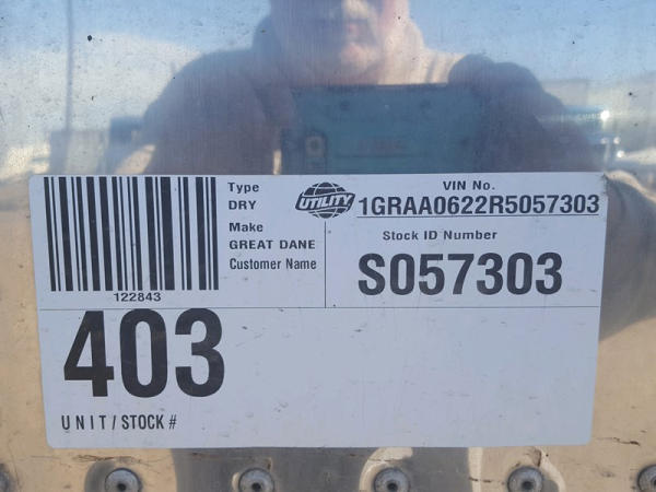 1994 Great Dane Trailer (ED1134), 53 foot Dry Van, Air Ride Suspension, swing door, LP22.5 tires.