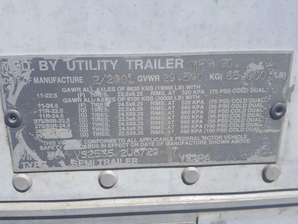 2002 Utility Reefer Trailer (ED1135), 53 foot Thermo King, Air Ride Suspension, swing door.