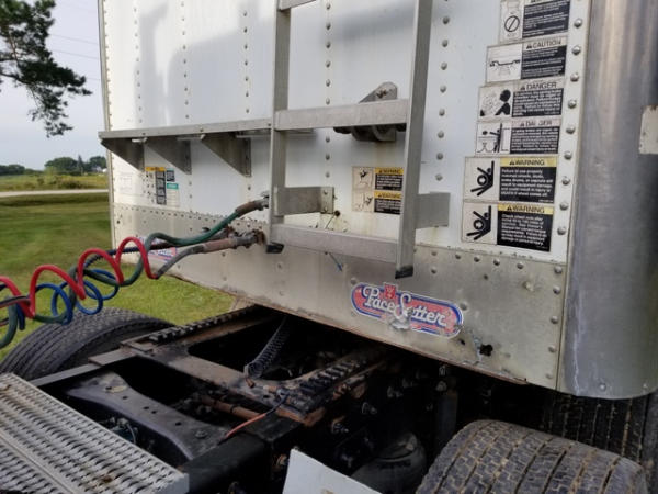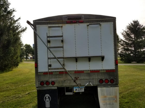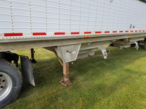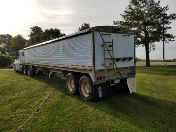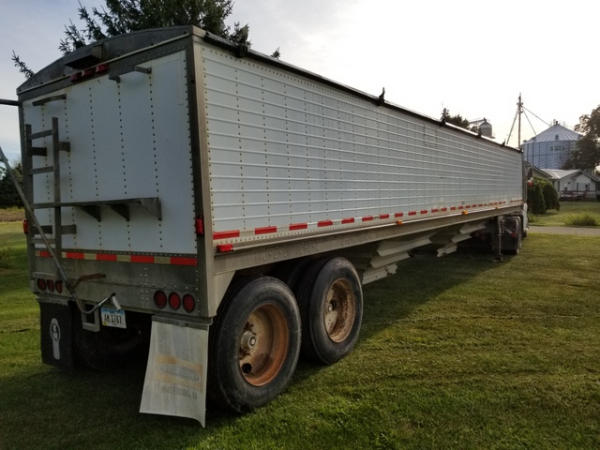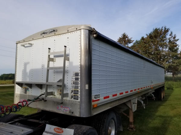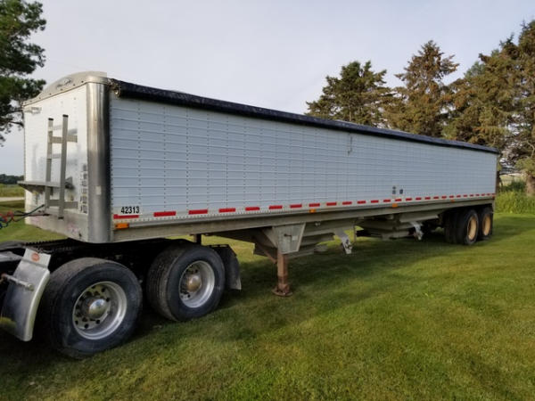 1998 Wilson Grain Trailer (PZ2877), 1997 Wilson PaceSetter aluminum hopper bottom grain trailer, tandem axle, air ride suspension, front axle has New brakes and 1 new air bag, 24.5 tires.