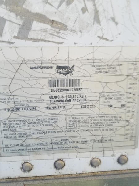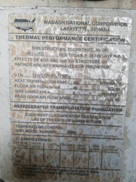 2009 Wabash Reefer Trailer (ED1114), 53 foot Carrier, Air Ride Suspension, swing door, LP22.5 tires.