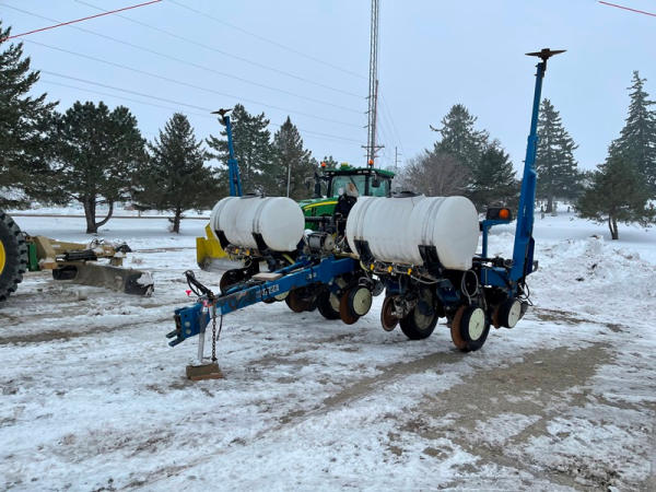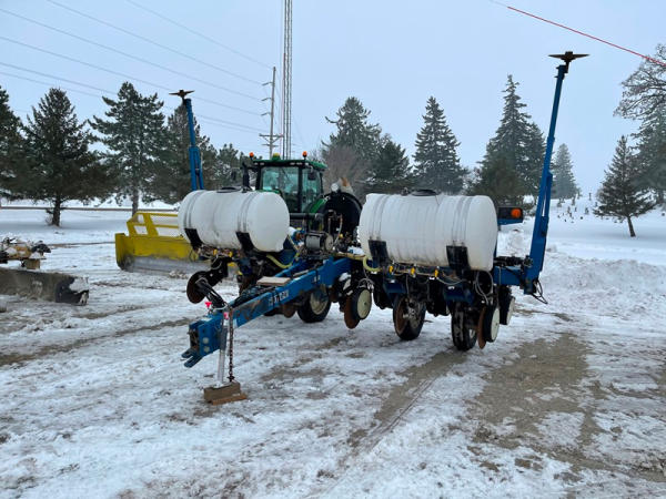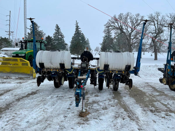 Kinze 3000 Planter (DPA0467), 6 row planter, row markers, liquid fertilizer option, (2) poly liquid tanks (1 tank has a hole in it), heavy duty openers, Precision air system, no meters, no monitor.