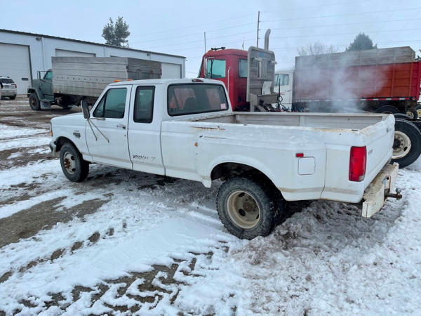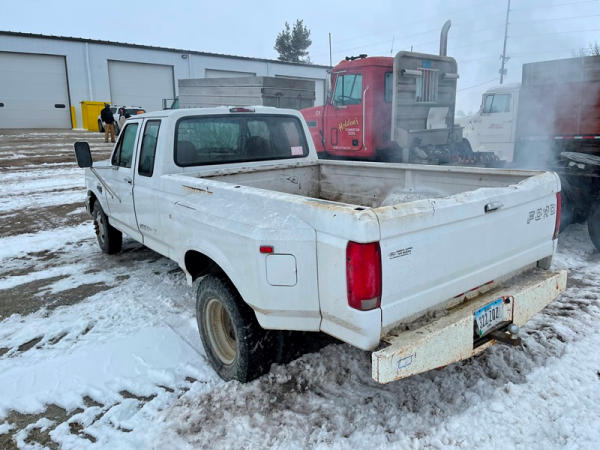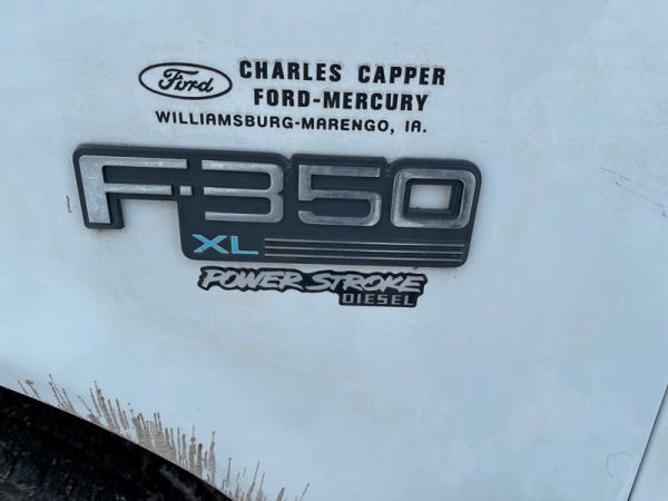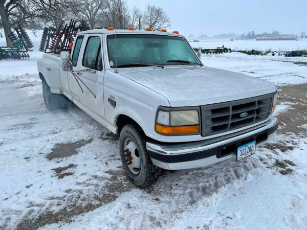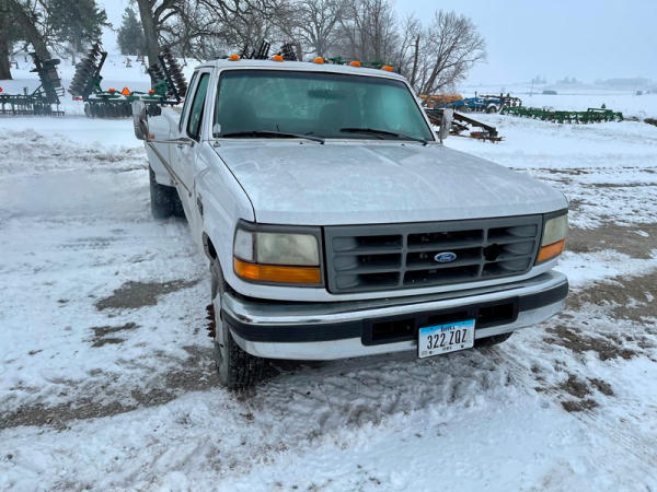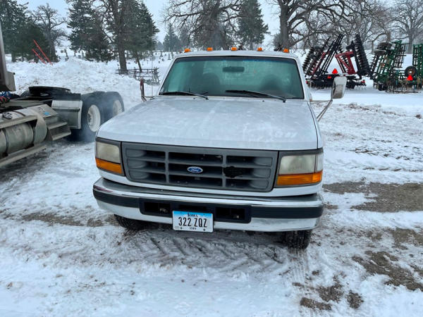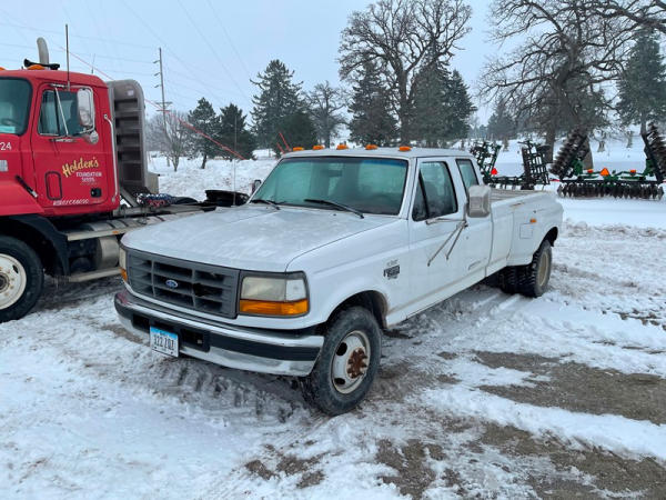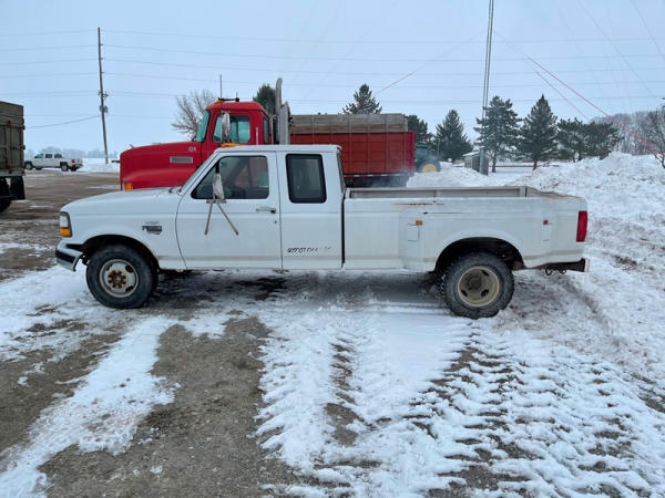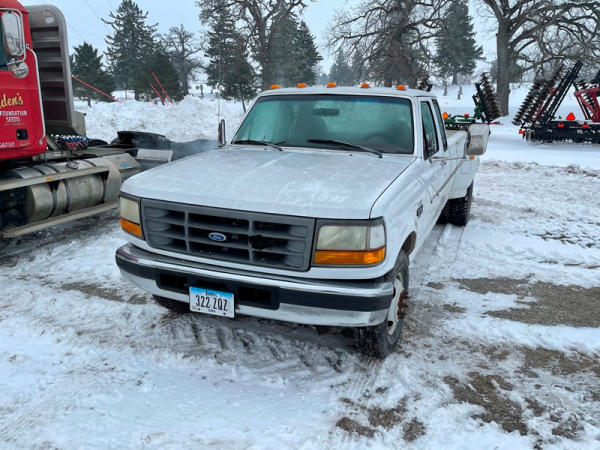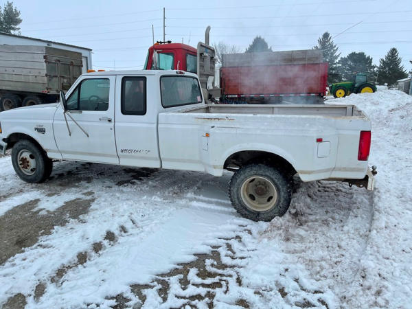 1997 Ford F-350 XL Pickup (DPA0458), 2WD, Power Stroke diesel engine, automatic transmission, heat, air conditioning, Am/Fm radio, LT215/85R16, dually, rear DMI ag bumper, gooseneck ball hitch, shows 94,423 miles.
