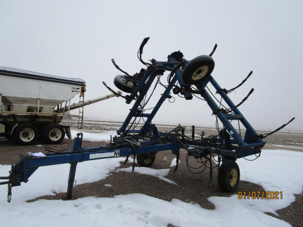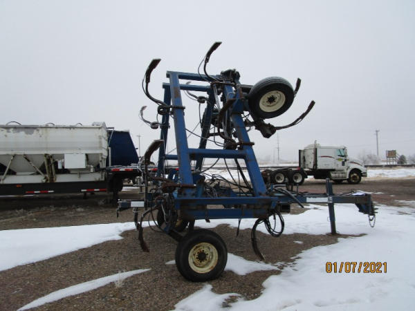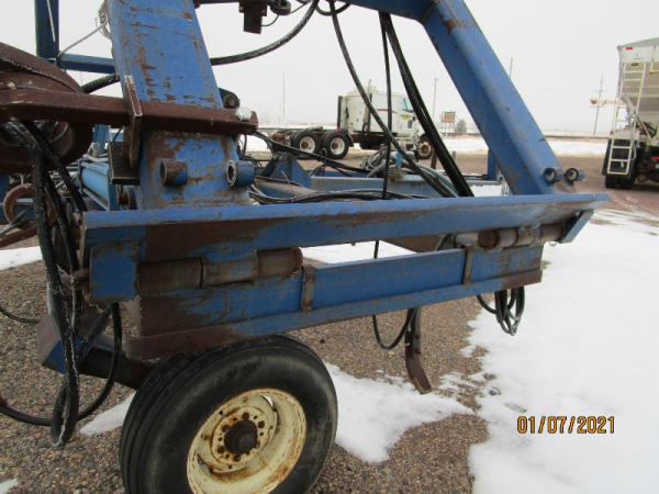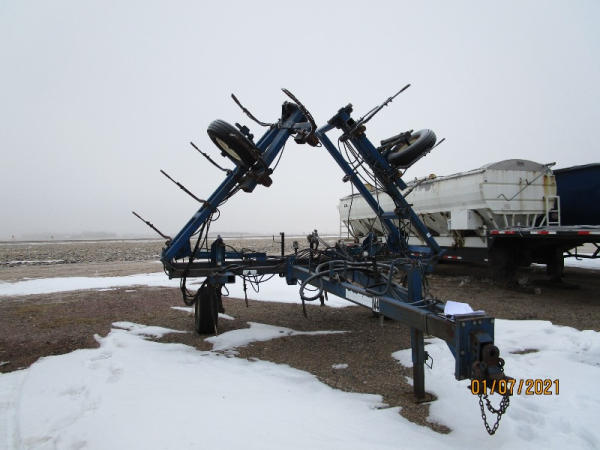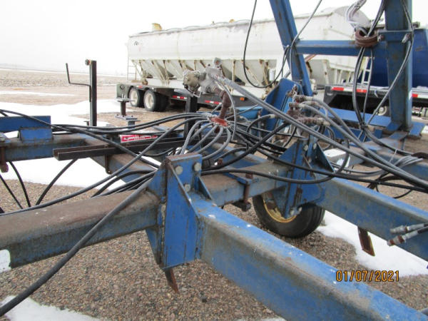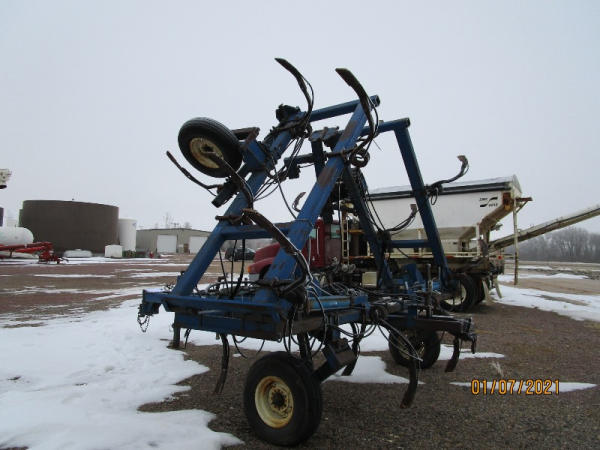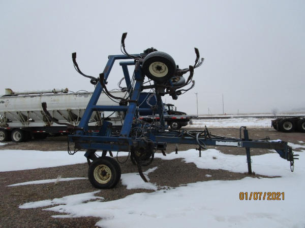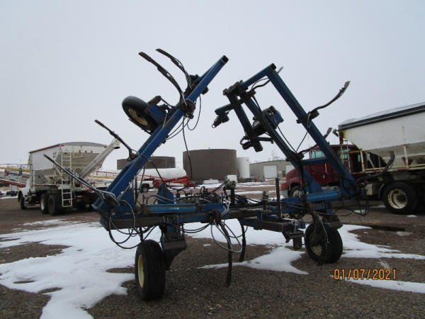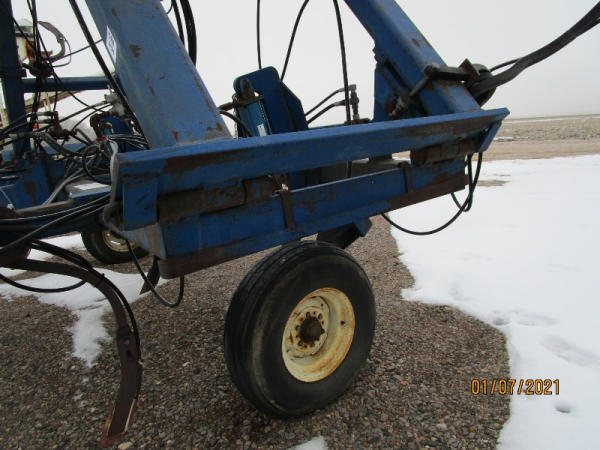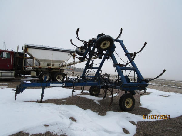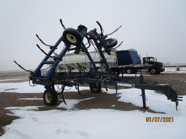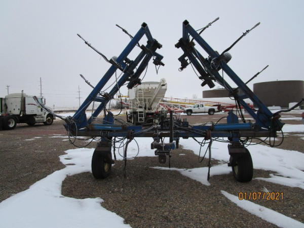 Blu-jet Tool Bar (DR7529), 17 knife pull type tool bar, Continental flow meter, hydraulic wings and gauge wheels.