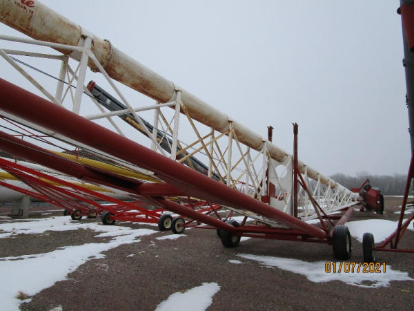 Feterl Auger (DR7533), 13" X 130' hydraulic portable grain auger, triple auger swing hopper, big 1000 PTO drive.
