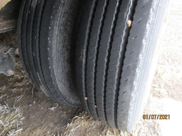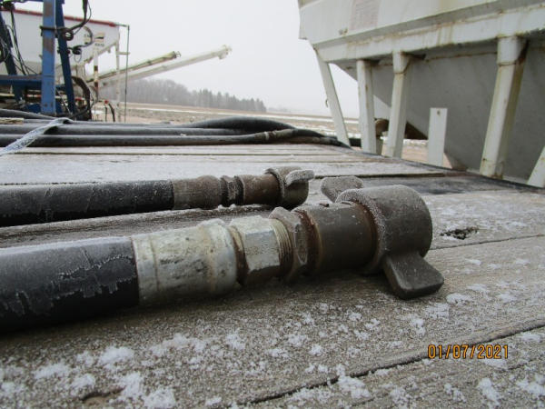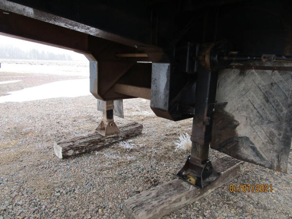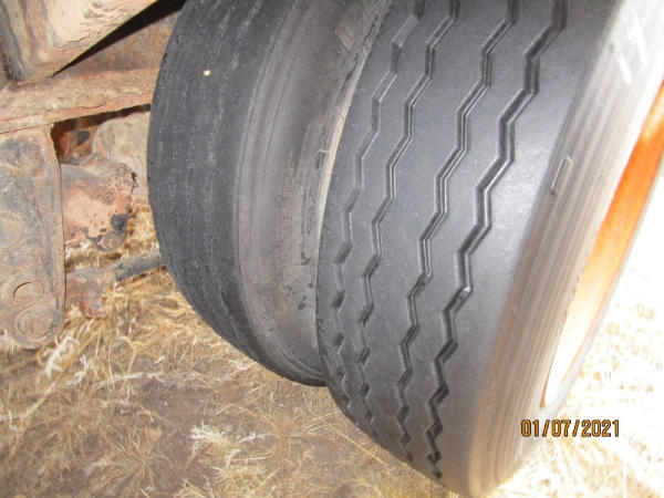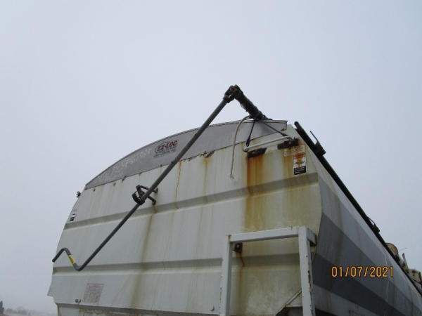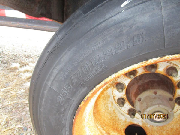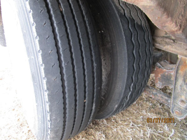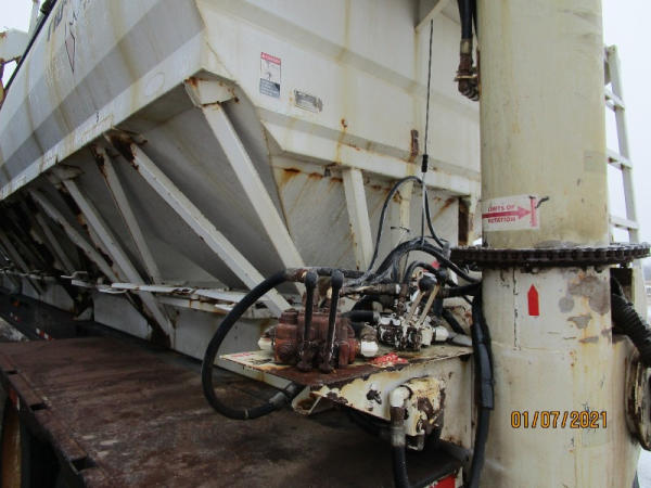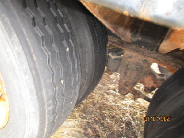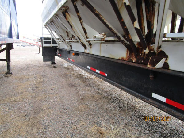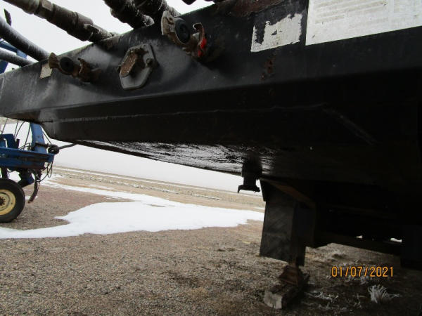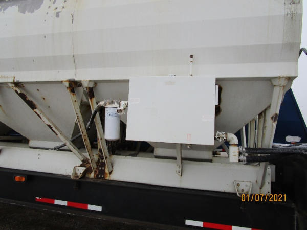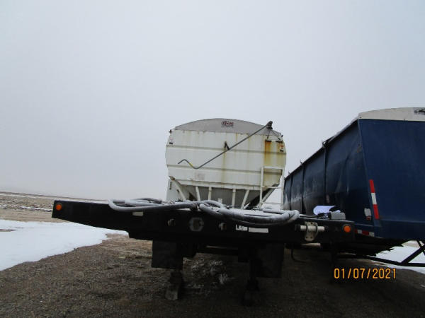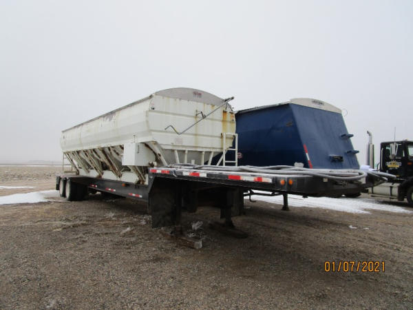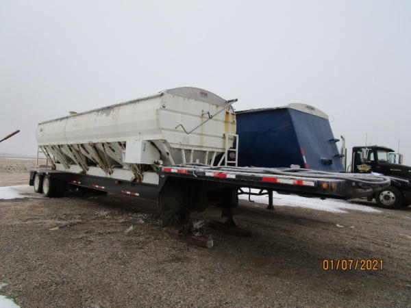1999 Mauer Dry Tender Trailer (DR7530), Loral Flo Max 5 bin stainless steel hydraulic dry fertilizer tender trailer, over head auger, roll tarp, 255/7-R22. tires.