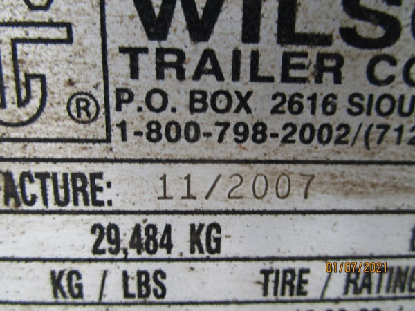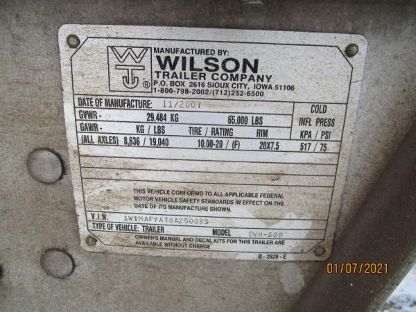 2008 Wilson Pace Setter Hopper Trailer (DR7520), model DWH-500 42' aluminum grain trailer, tandem axle, air ride suspension, 24.5 tires, outside aluminum wheels, electric roll tarp.