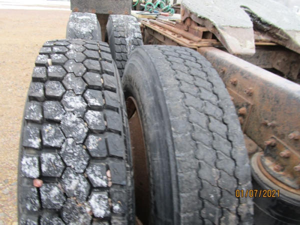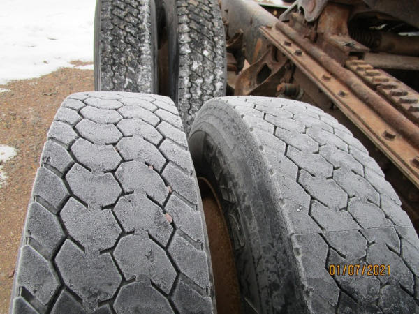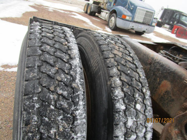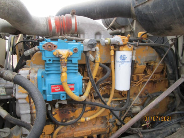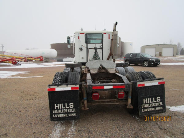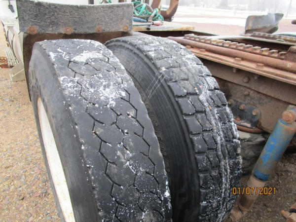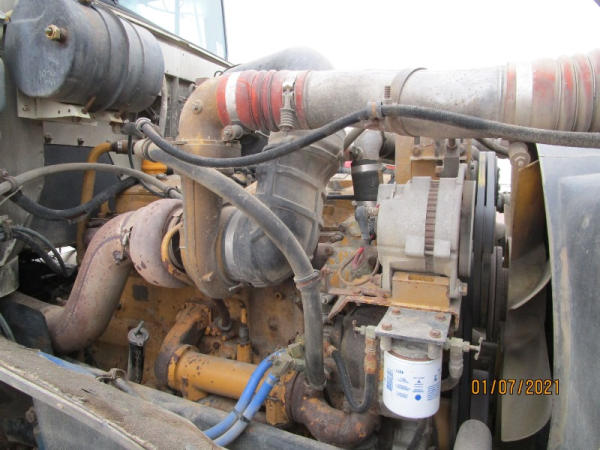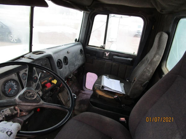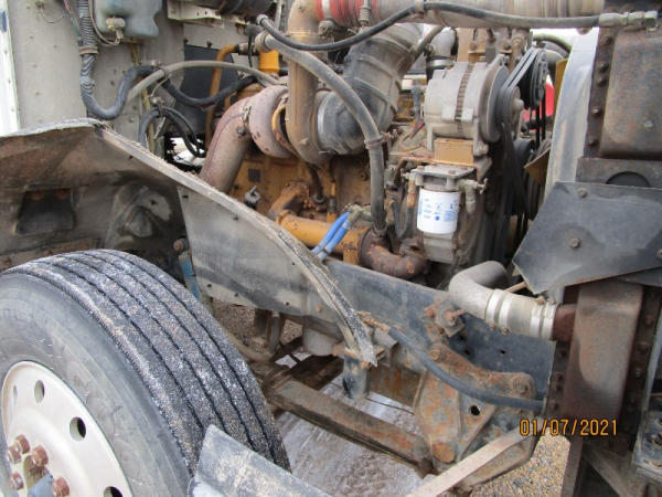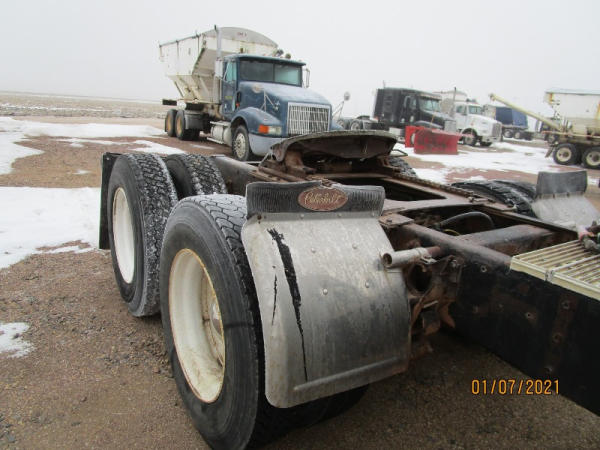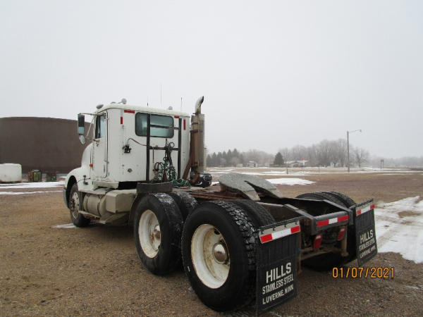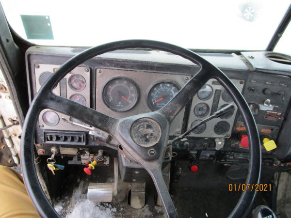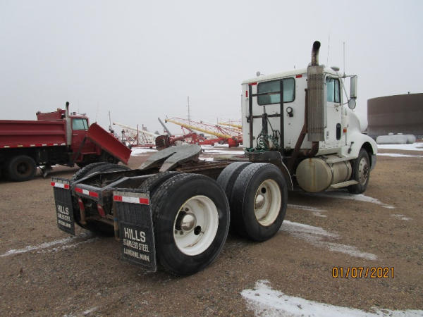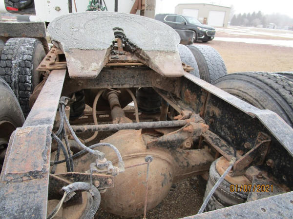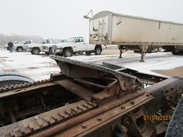 1992 International 9400 Truck (DR7521), Cat diesel engine, 9 speed transmission, tandem axle full screw, air ride suspension, 5th wheel plate, hydraulic wet kit, day cab, dual aluminum fuel tanks, shows 779,914 miles.