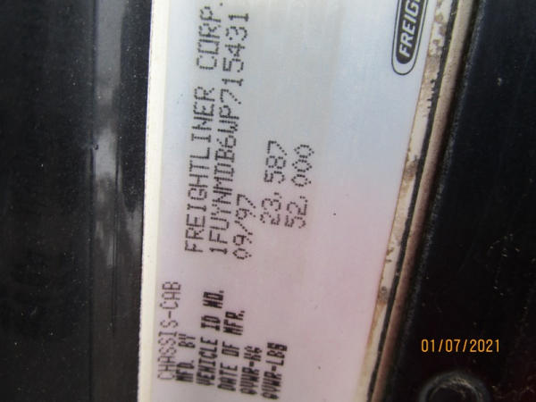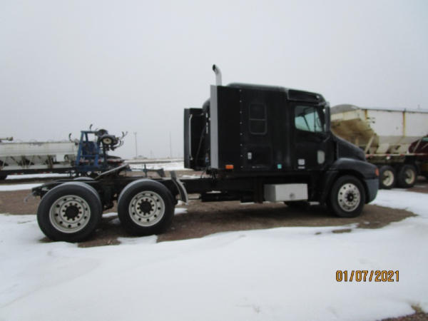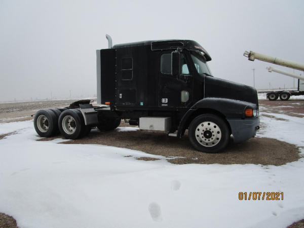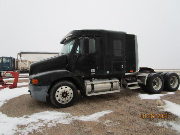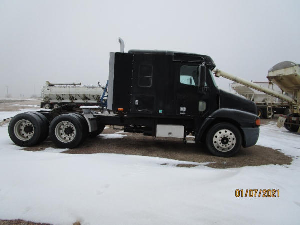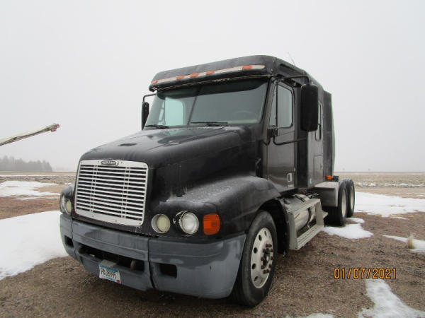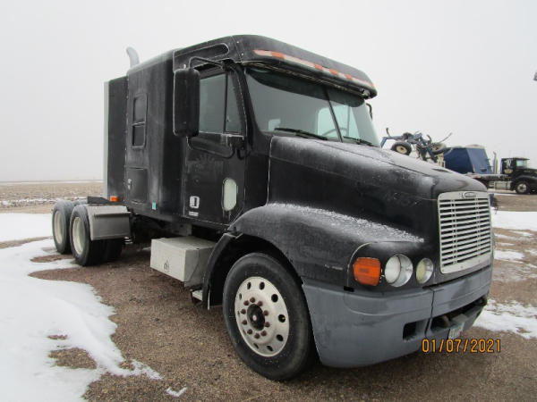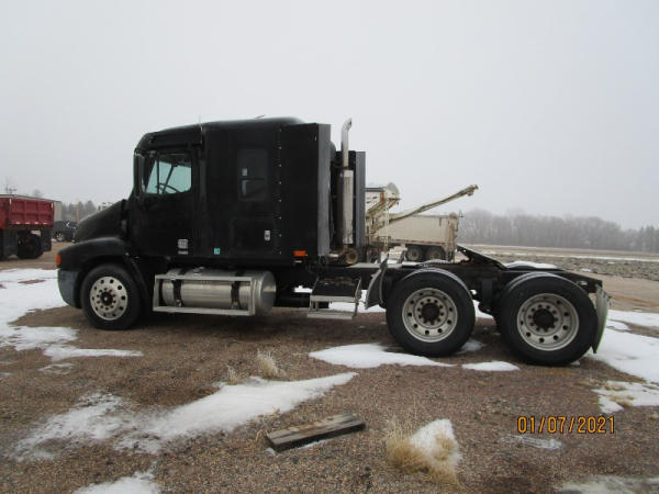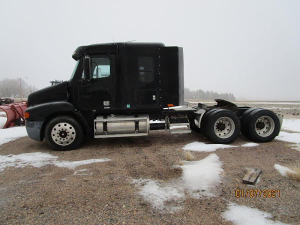 1998 Freightliner Century Truck (DR7524), Cummins diesel engine, 10 speed transmission, tandem axle full screw, air ride suspension, walk-in studio sleeper, air slide 5th wheel plate, air dump valve, engine brake, cruise control, cab heat/air conditioning, 24.5 tires, all aluminum wheels, shows 785,000 miles.