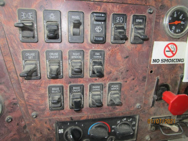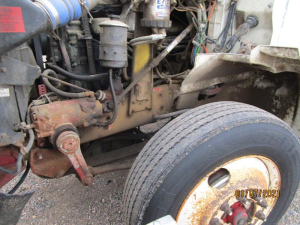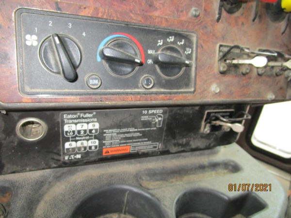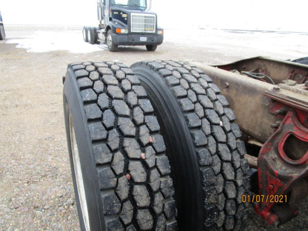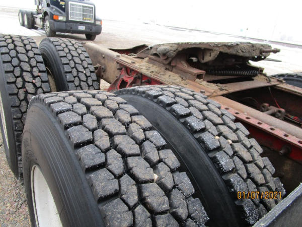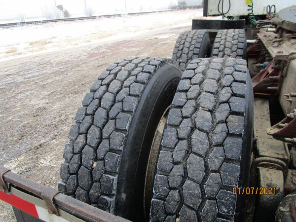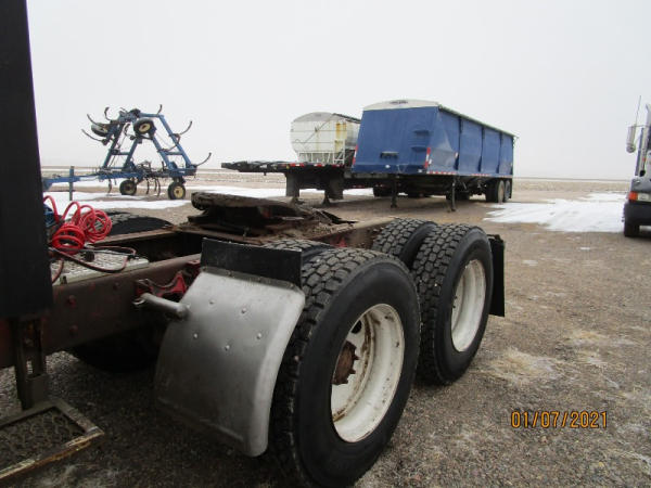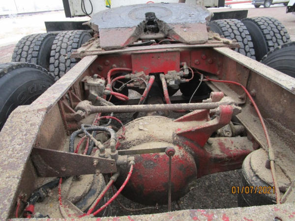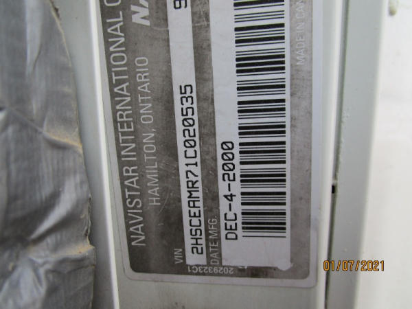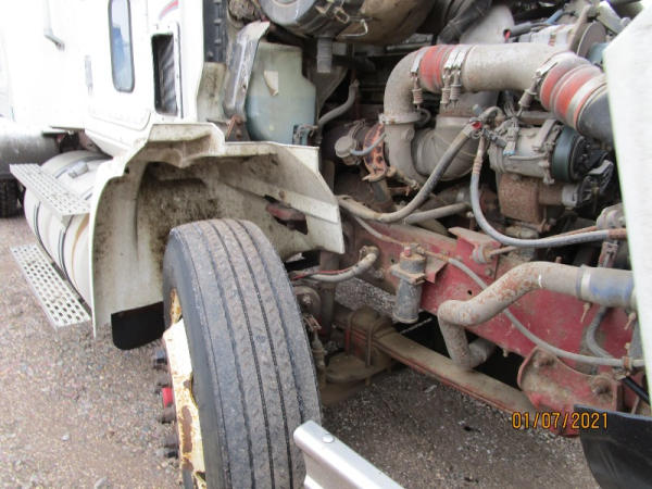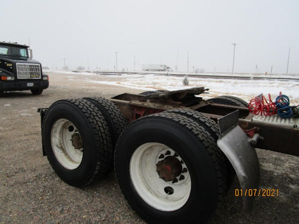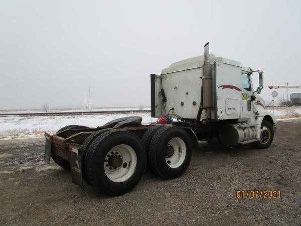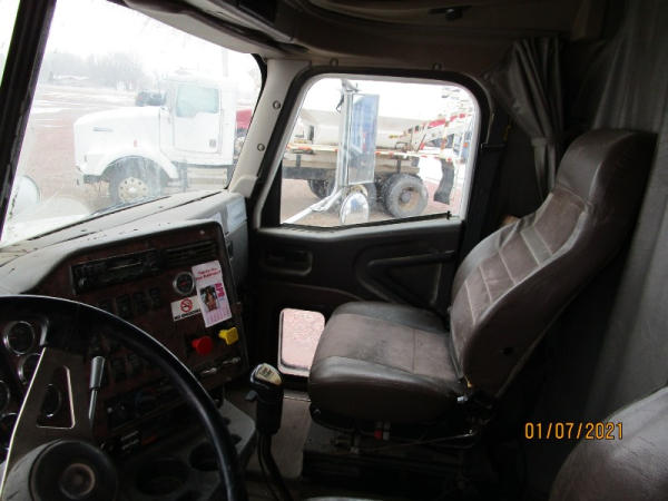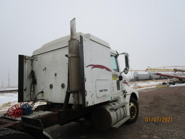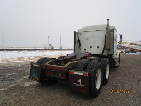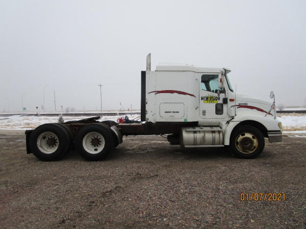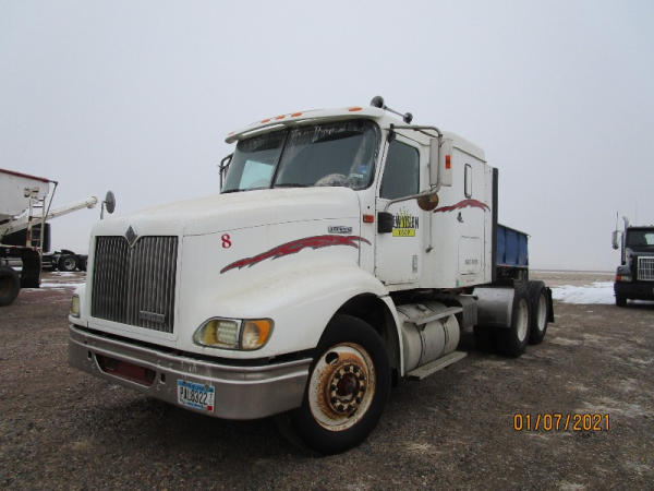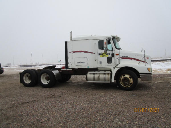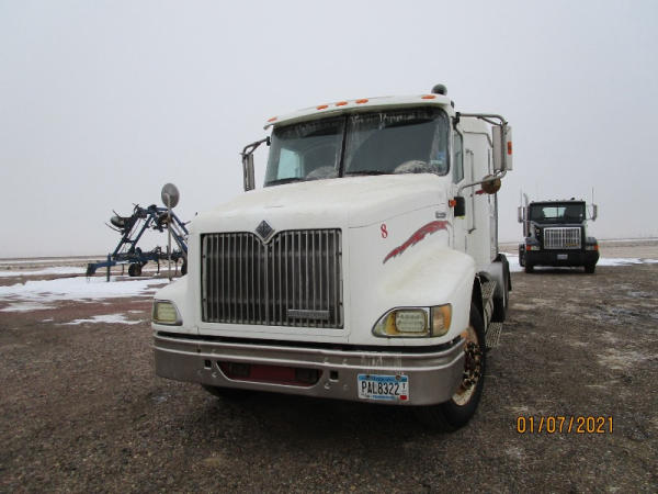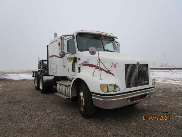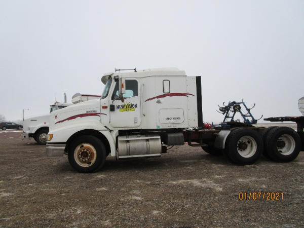 2001 International 9200i Truck (DR7527), Detroit diesel engine, 10 speed transmission, tandem axle full screw, air ride suspension, Pro mid roof sleeper, dual aluminum fuel tanks, engine brake, cruise control, cab heat/air conditioning, 5th wheel plate, good 24.5 tires, shows 1,038,358 miles.
