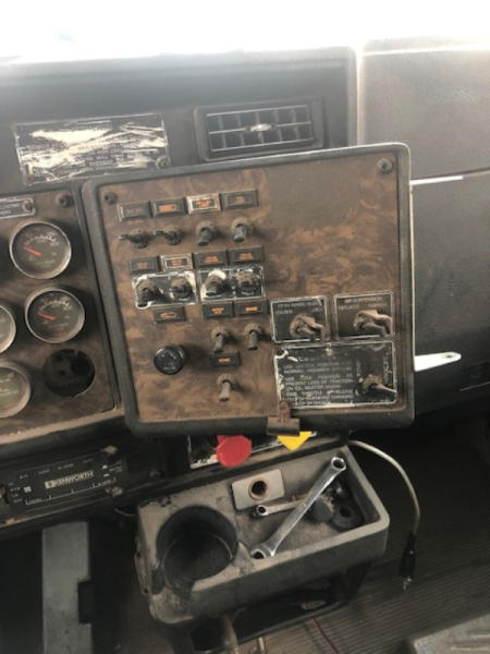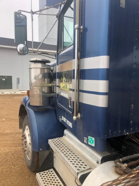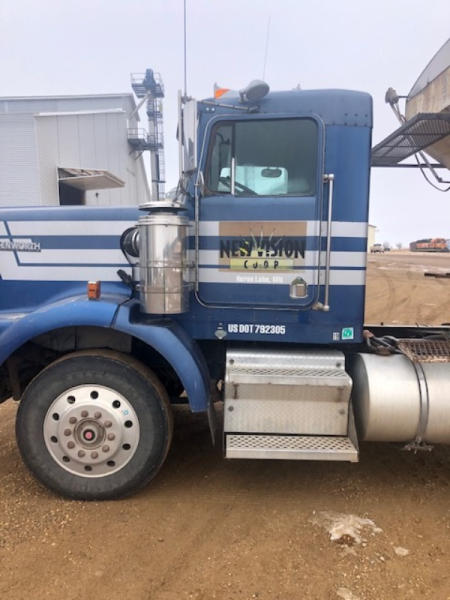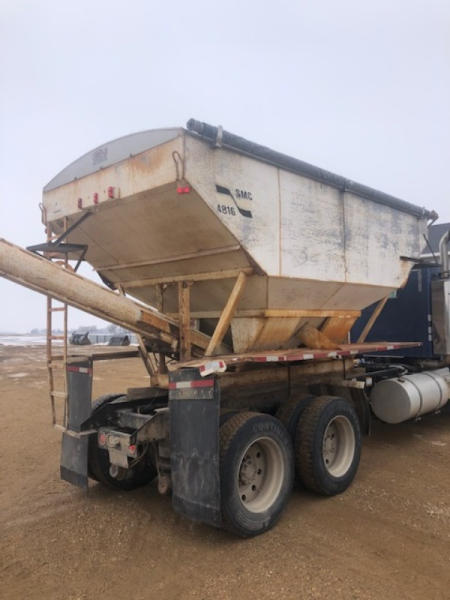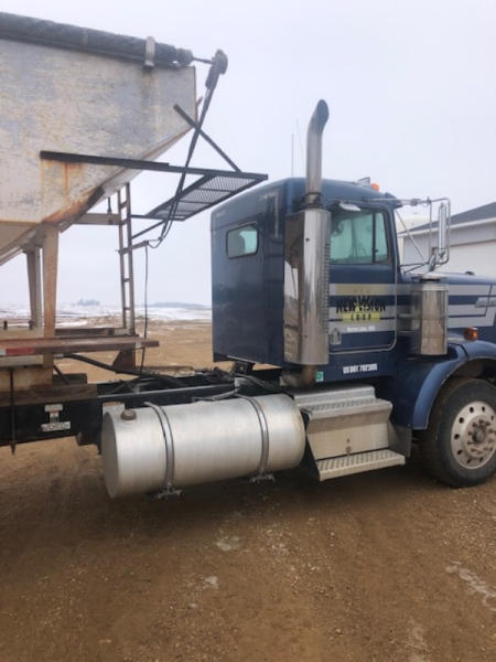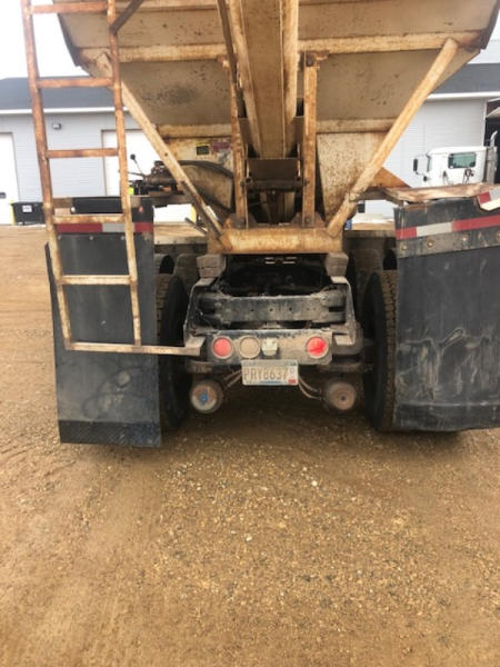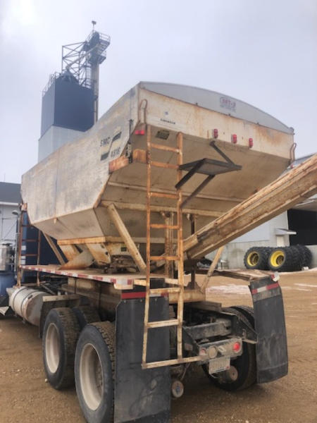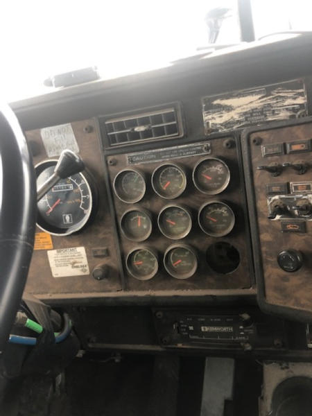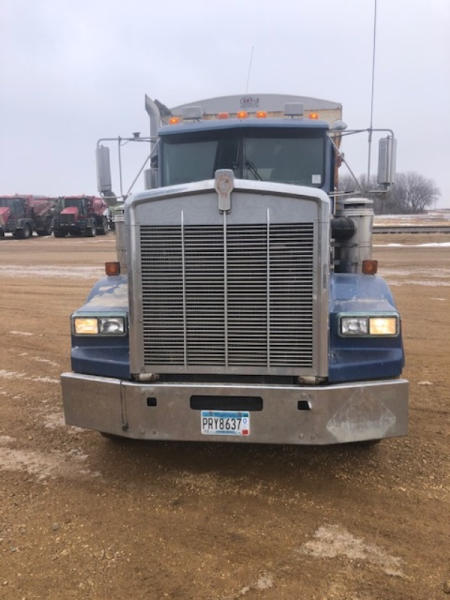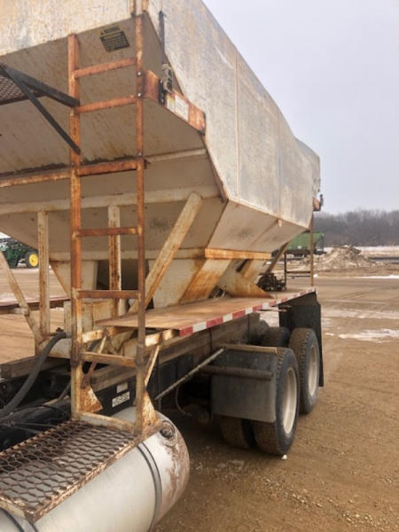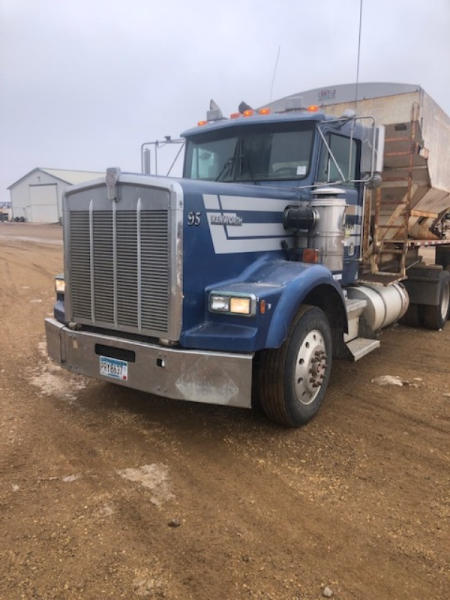 1995 Kenworth T800 Dry Truck (DR7539), Detroit diesel engine, 10 speed transmission, tandem xle full screw, air ride suspension, Simonsen 4816 hydraulic stainless steel dry tender box, rear auger, roll tarp, engine brake, crusie control, air dump valve, 22.5 tires, outside aluminum wheels, dual aluminum fuel tanks, shows 711,615 miles.