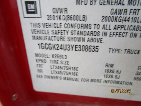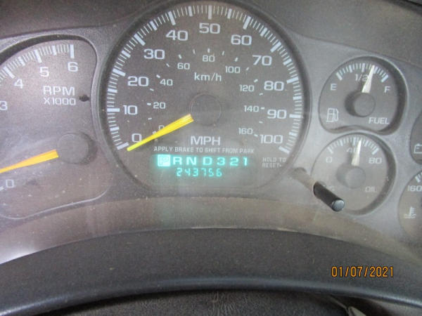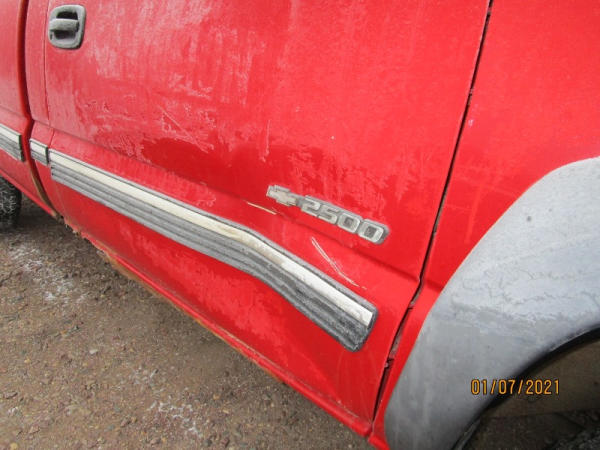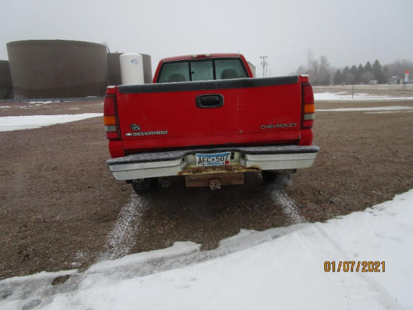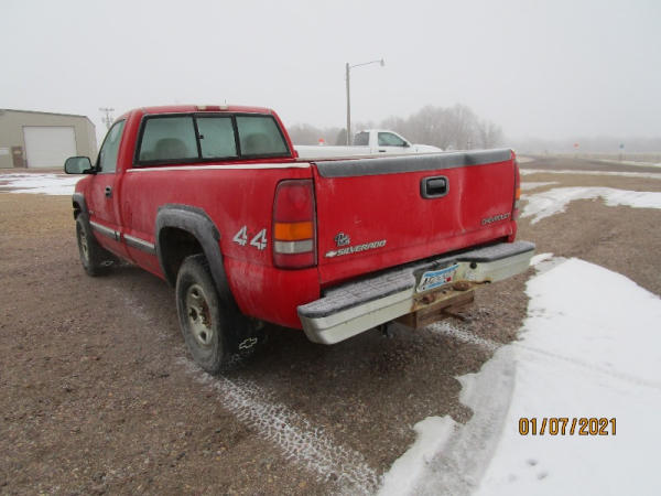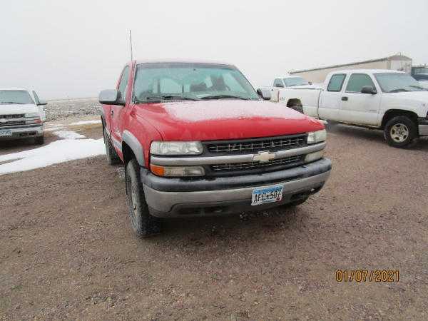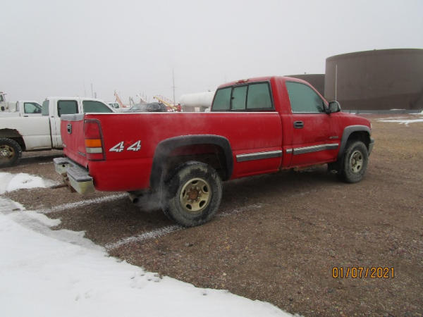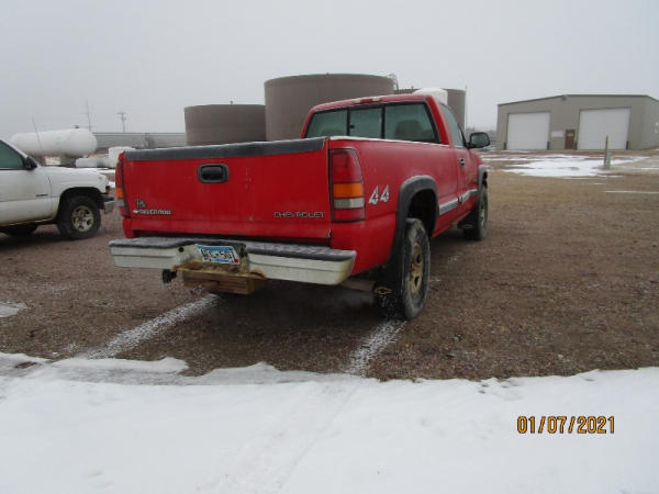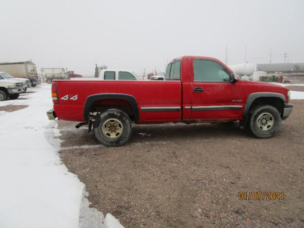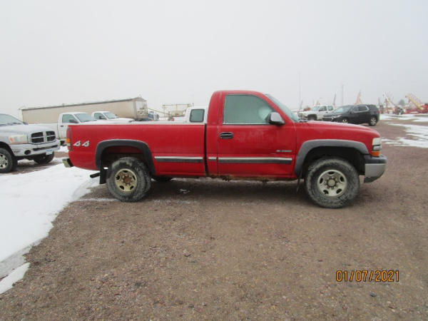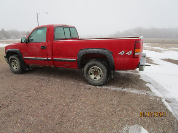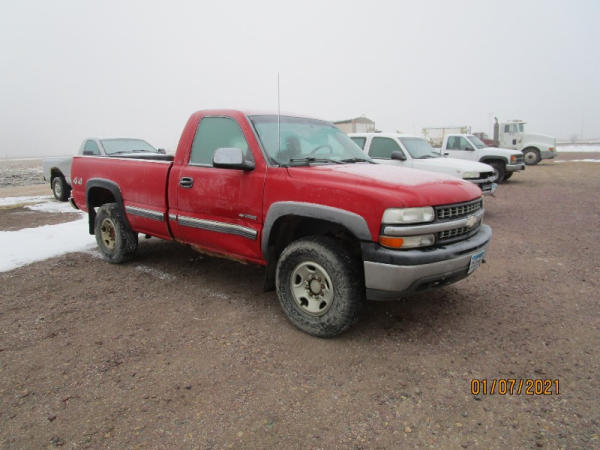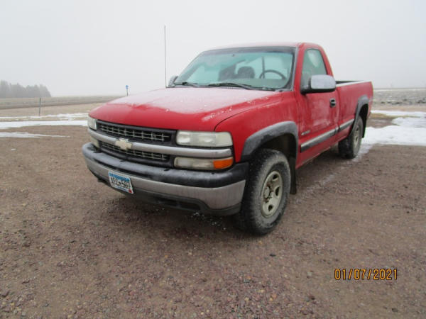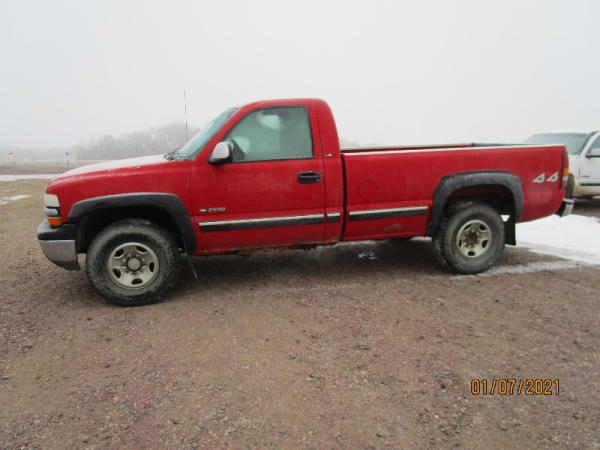 2000 Chevy 2500 Pickup (DR7514), 6.0 liter gas engine, automatic transmission, regular cab, long box, 4X4, rear ag bumper, heat/air conditioning, cruise control, power windows & locks, 265/75R16 tires, shows 243,756 miles.