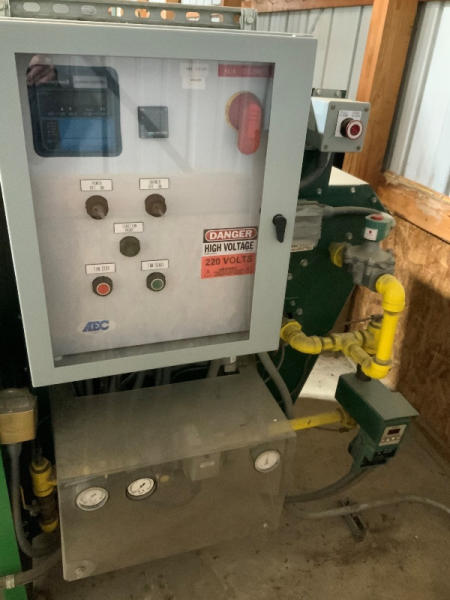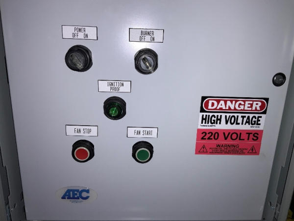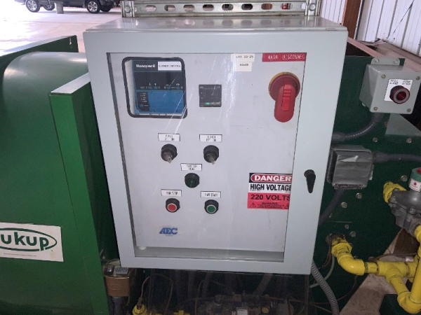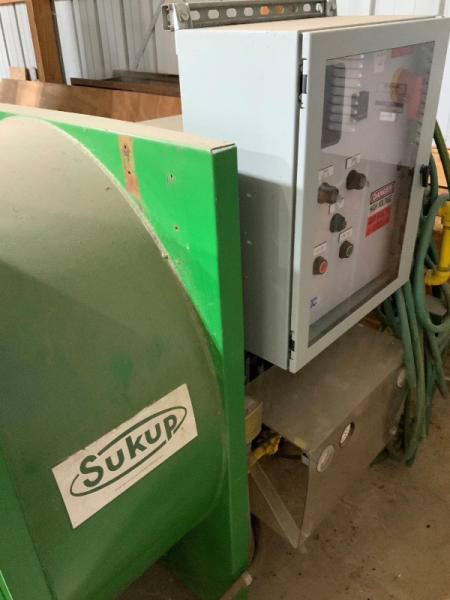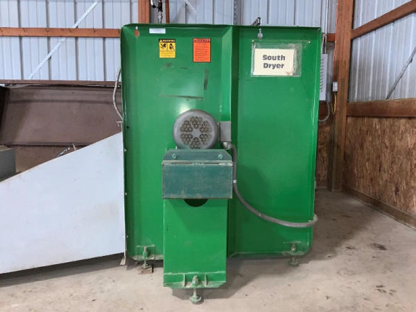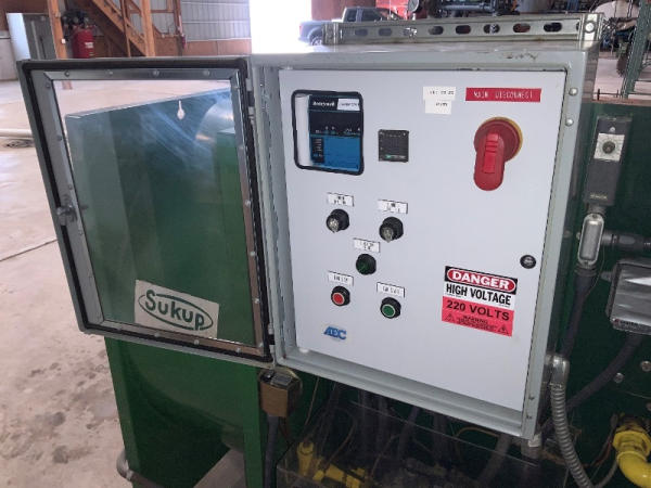 2008 AEC Dryer (NP1367), 193" long x 82" wide x 62" tall (the height of the full system without a bin is 62", height with (1) layer of bins is 66", height with (2) layers of bins is 108"), Sukup fan, Baldor industrial motor, Honeywell burner control, Eclipse rotary actuator, (6) bins are included with the dryer, bins can be stacked up to 3 high.
