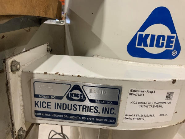 Kice Multi-Aspirator (NP1374), Model 6DT4-1, 36" long x 24" wide x 59" tall, Baldor Industrial Motor (1.5HP, 115/230 volts), needs hoses, taped in areas to ensure a better air seal.