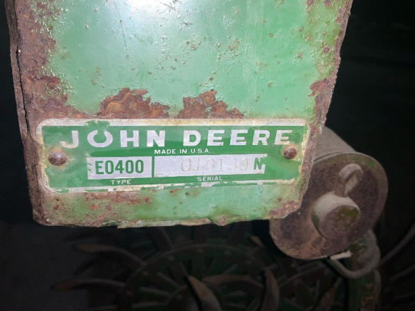 John Deere 400 Cultivator (NP1373), 185" long x 40" wide x 50" tall, Type E0400, 3 point.