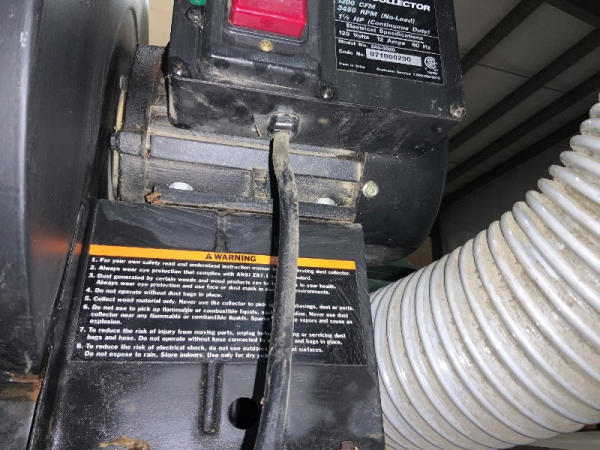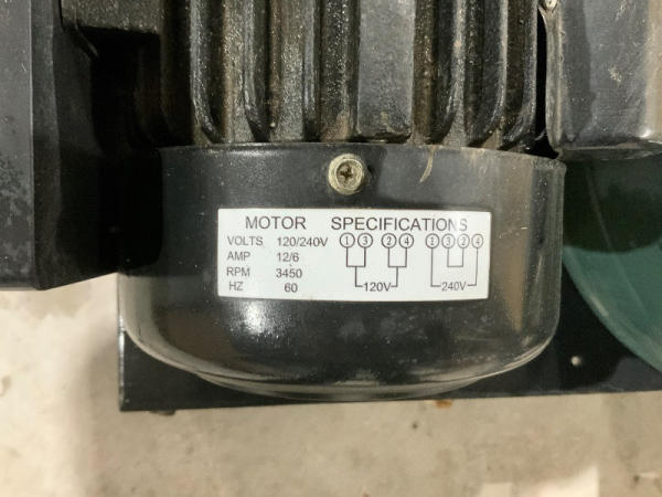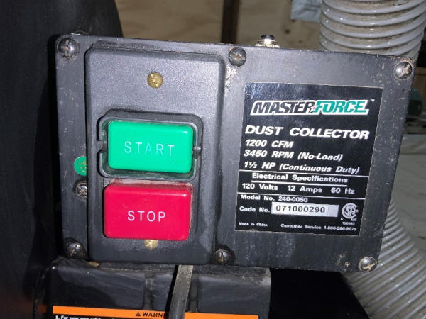 Master Force Dust Collector (NP1375), Model 240-0050, 1200 CFM, 3450 RPM, 1.5HP (continuous duty), 120 volts, 12 amps, 60 hz.