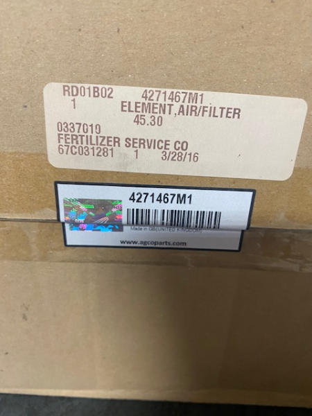 (6) AGCO Air Filters (NP1364), Part #837091129, for RoGator RG900 and RG1100 machines.