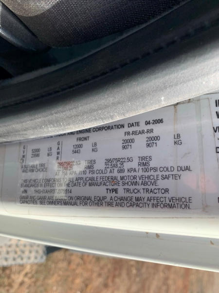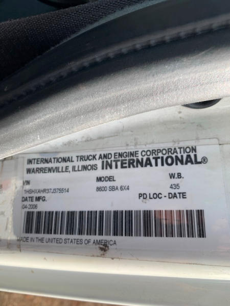 2007 International 8000 8600 Day Cab truck (DPA0418), ISM Cummins engine, auto shift transmission, electric windows/locks, 6 aluminum rims, tires 295/75R22.5, 392,414 miles, still in use.