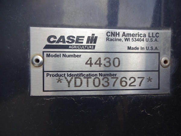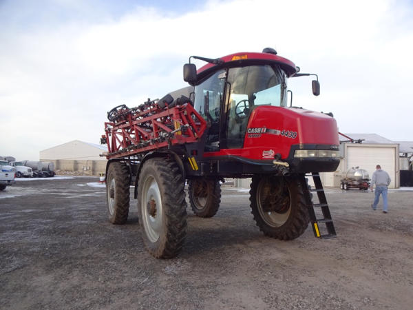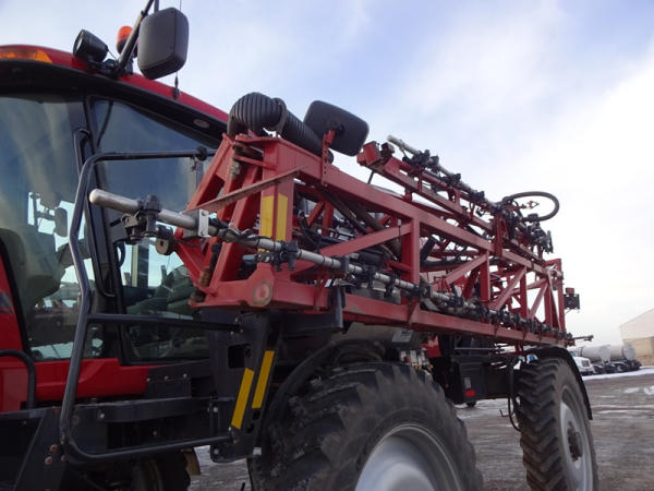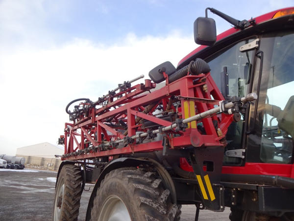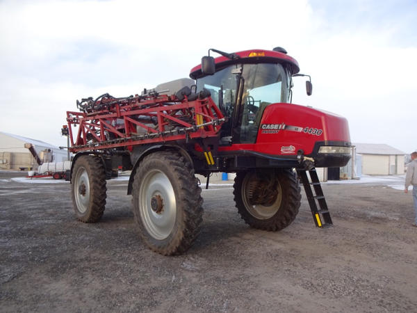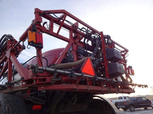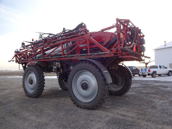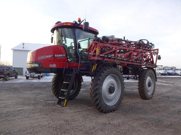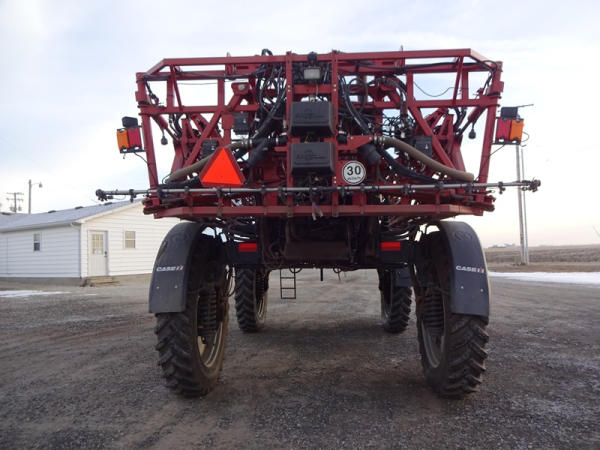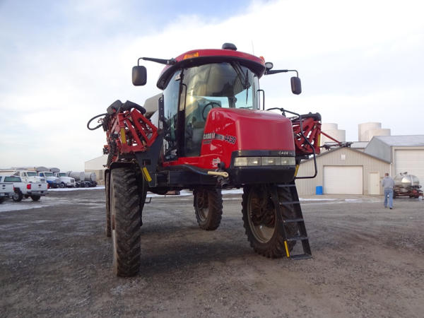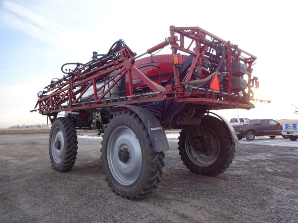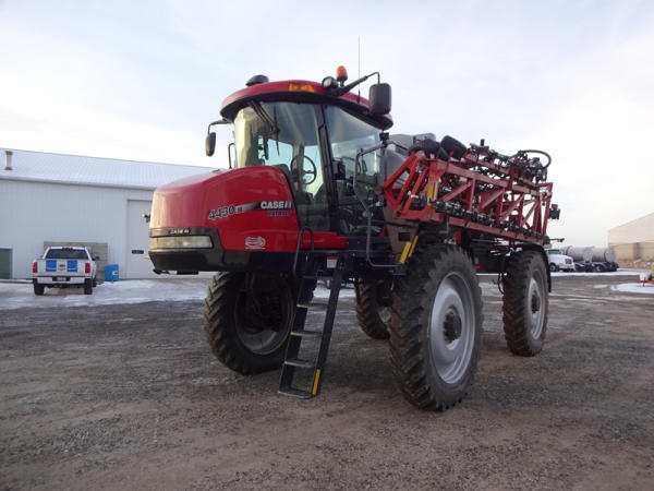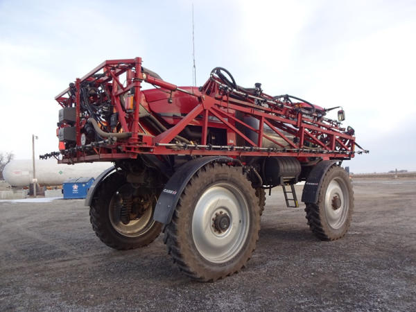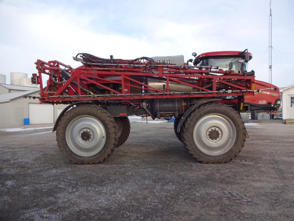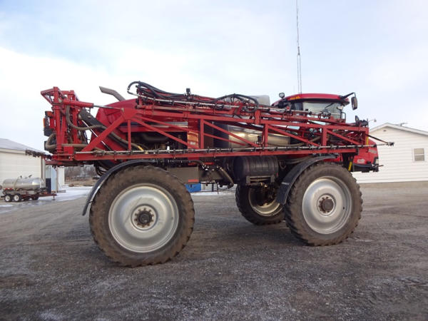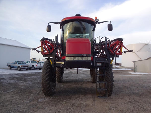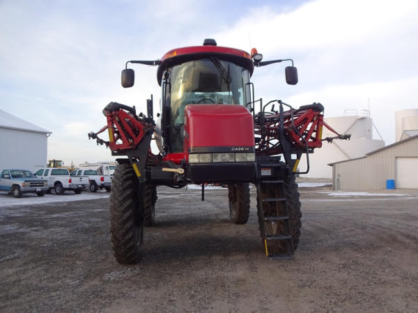 2014 CaseIH Patriot 4430 Sprayer (PZ6302), Cummins diesel engine, hydrostatic transmission, air conditioning, heat, Am/Fm CD radio, becon light, 1200 gallon stainless steel liquid system, 120' boom, foam marker, 55 gallon poly foam marker tank, top poly rinse tank, front fill, Michelin SprayBib VF 420/95R50 tires, fenders, Aim Command, Capstan AG contoller, Raven Viper Pro monitor, Voyager cab camera, shows 2503 hours.