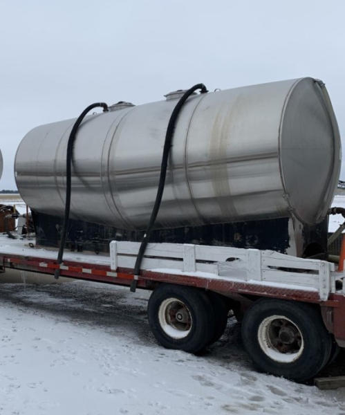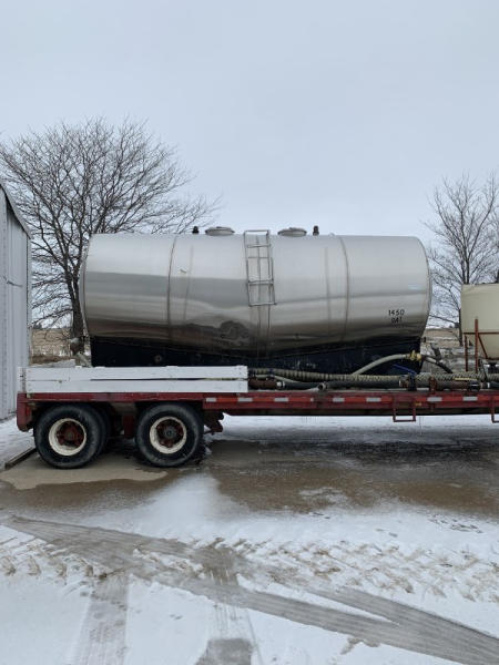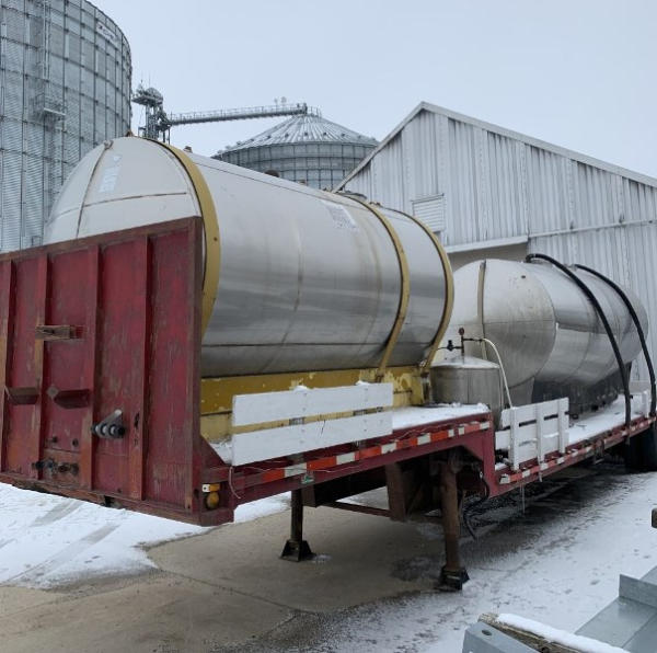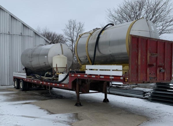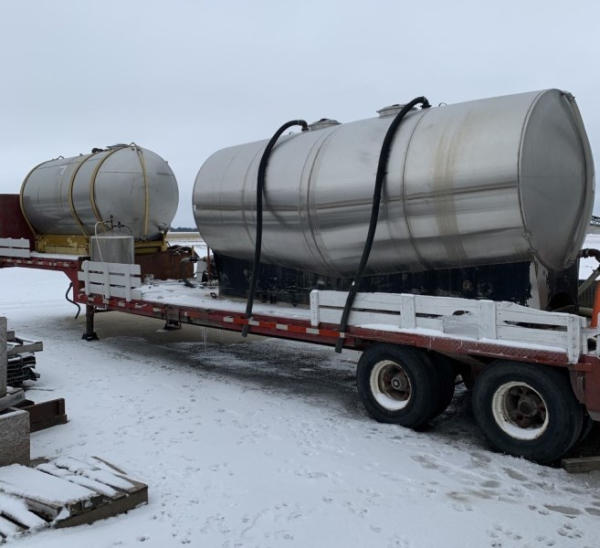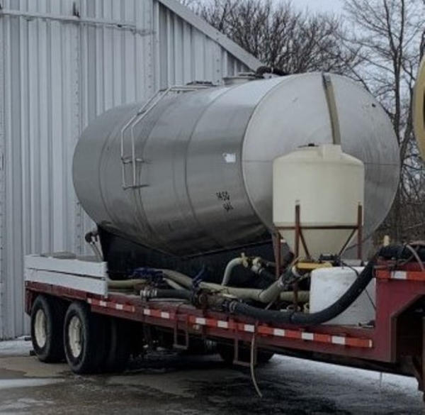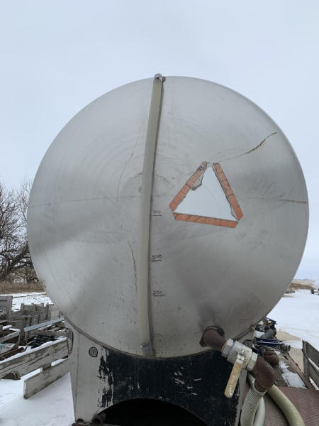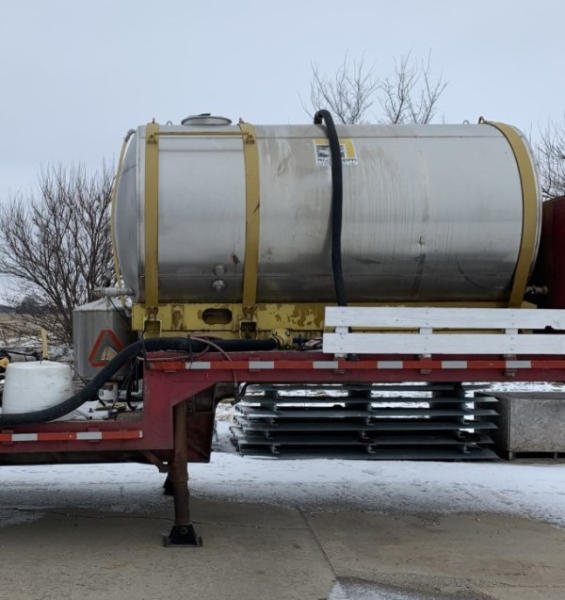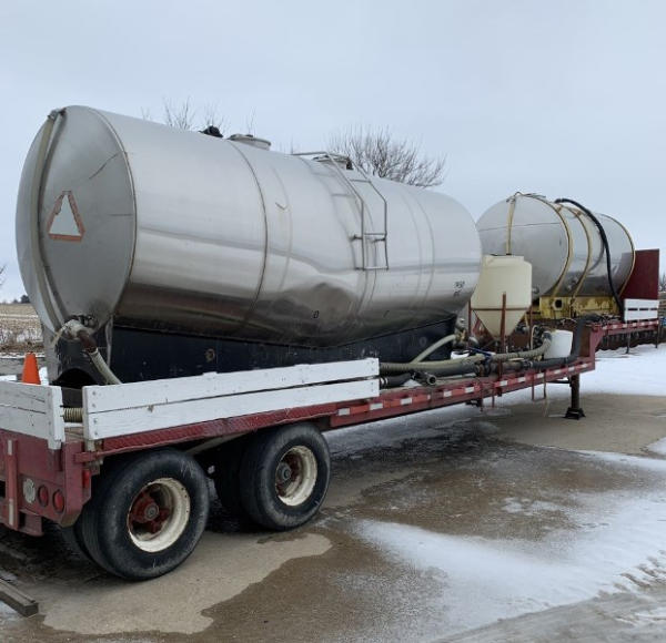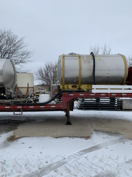 1976 Marion Holmes Step Deck Trailer (ED1747), 1976 Marion Holmes Step Deck Trailer with 3200 Gallon Stainless Steel rear tank, 1800 gallon Stainless Steel front tank, spring ride, wood floor, gas powered pump with inductor and water tank, Low Pro 10R17.5 tires, complete functional unit with tanks and plumbing.