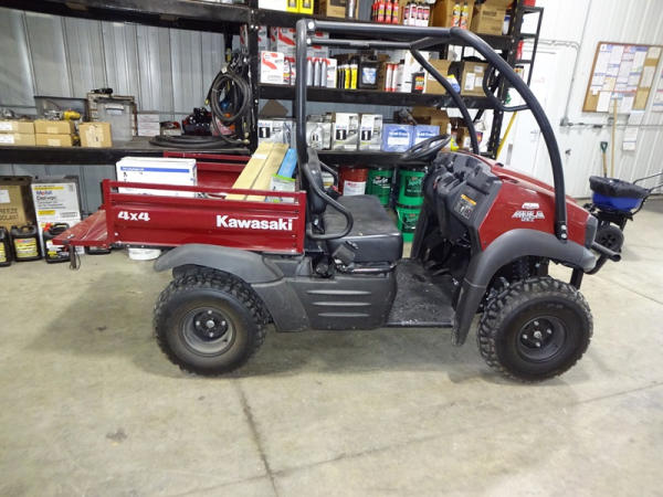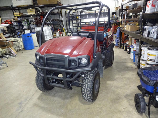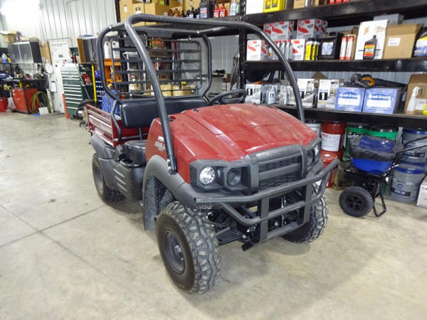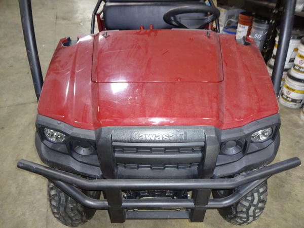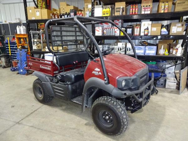 2017 Kawasaki Mule (PZ6311), 4x4, Kawasaki Mule, gas engine, canopy, lights, box, 24x9.00-10 front tires, 24x11.00-10 rear tires, shows 144 hours.