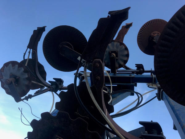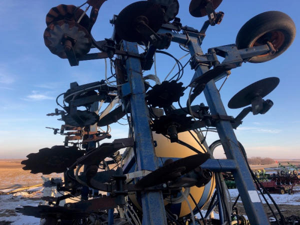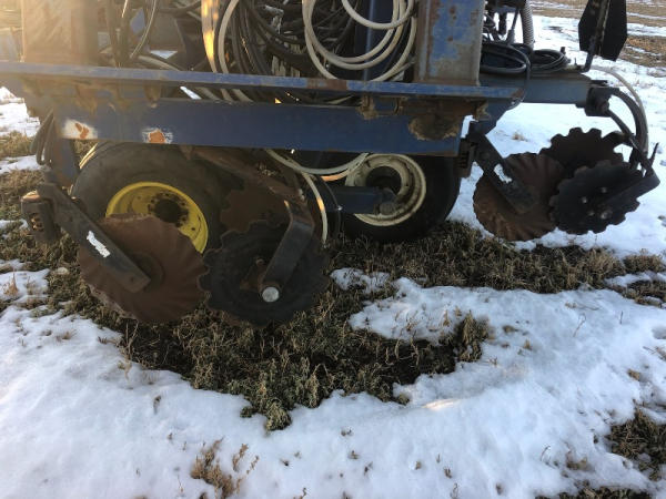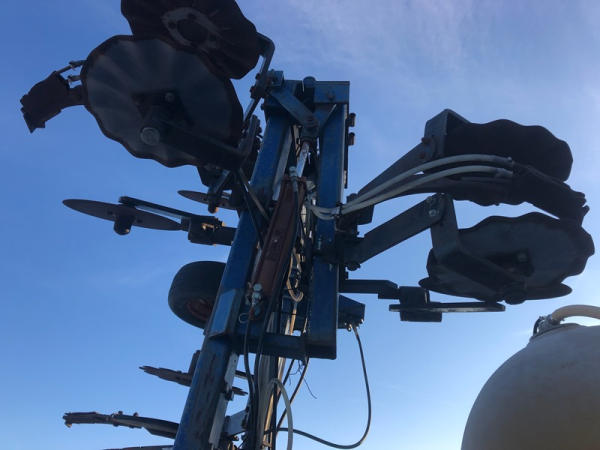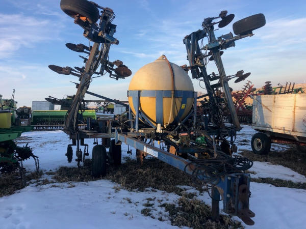 Blu-Jet Landwalker (EG201), 16 shank, 30" spacing, liquid applicator, 450 gallon tank capacity, walking tandems, coulters, double folding bar, hydraulic fold, two hydraulic pumps, dual placement unit, 12.5Lx15 tire size.