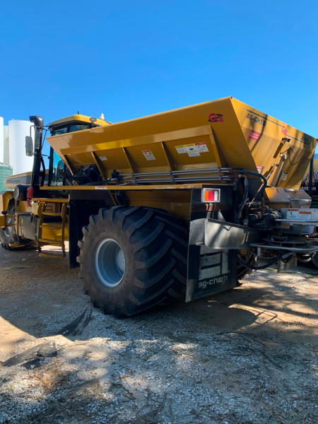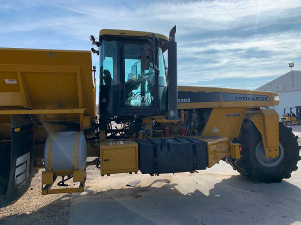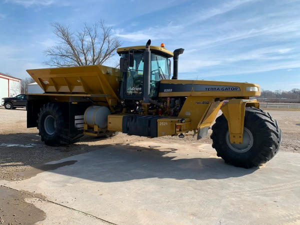 2009 Terra Gator 8203 Dry Floater (PZ6315, Unit 15516), Cat diesel engine, Terra Shift transmission, air conditioning, heat, Am/Fm radio, New Leader L4000 G4 - 13 stainless steel dry spreader box (S/N 127877), twin spinner, all hydraulic, Alliance Agri Star 1000/50R25 front tire, New Alliance Agri Star 1000/50R25 rear tires (Less than 25 hours on rear tires), Raven Viper Pro monitor, shows 5,939 hours.