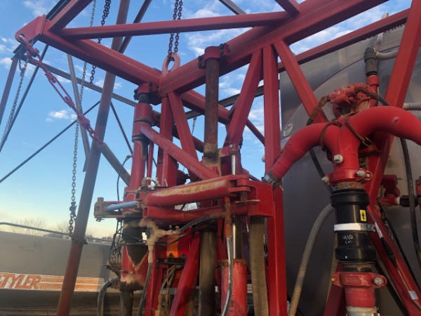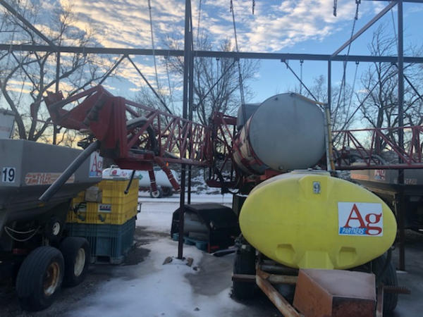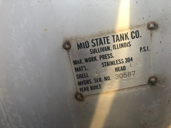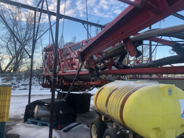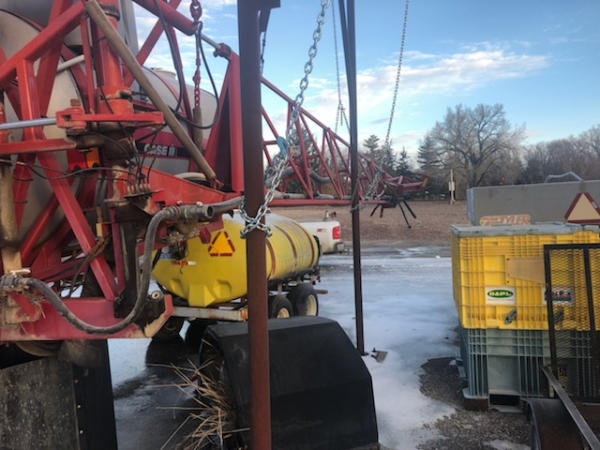 2003 Case Liquid System (NP1419), stainless steel liquid tank, top mount poly rinse tank.