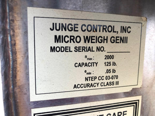 Junge Micro Weigh System (NP1386), Junge Flow Controller 16, AD-4228 Weighing Indicator, Scot Pump.