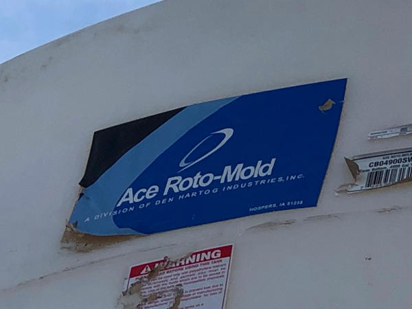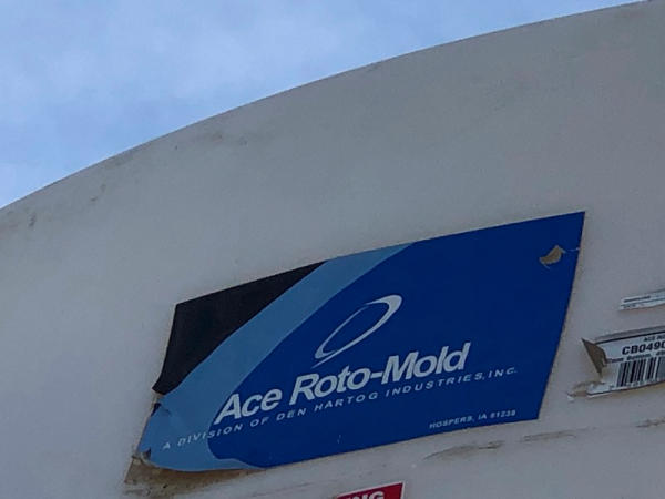 Ace Roto-Mold Poly Tank/Stand (NP1394), approx. 4,900 gallon capacity, cone bottom poly liquid tank, stand.