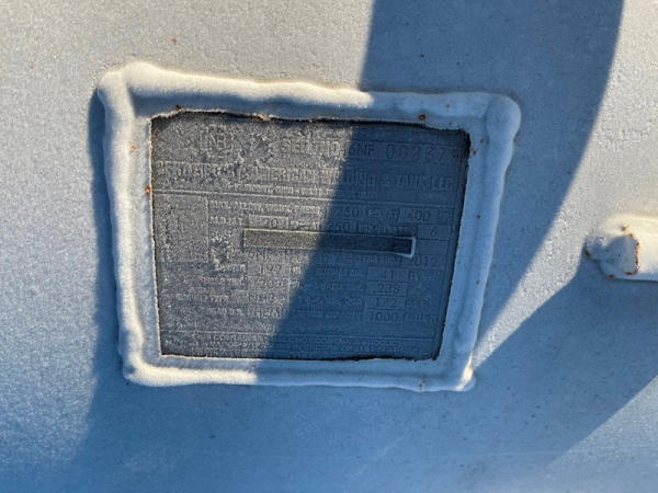 NH3 Nurse Tank (DPA0489), 2012 American Tank & Welding 1000 gallon NH3 nurse tank, top front fill, data plate.