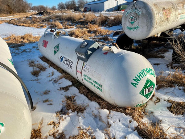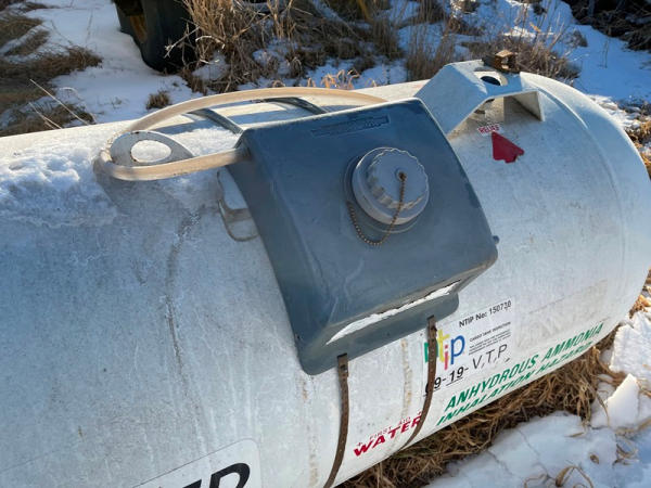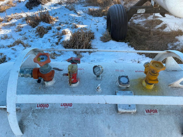 NH3 Nurse Tank (DPA0490), 1000 gallon NH3 nurse tank, top front fill, water tank, data plate.