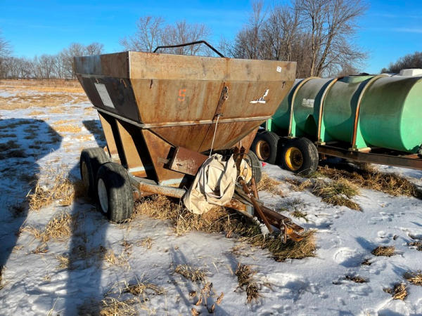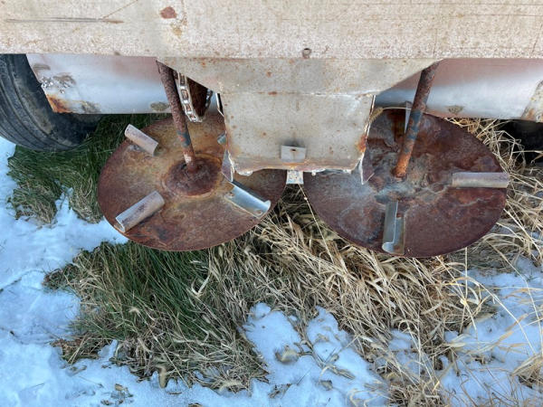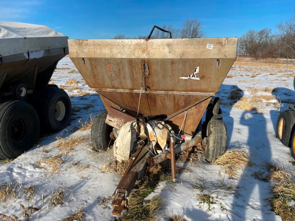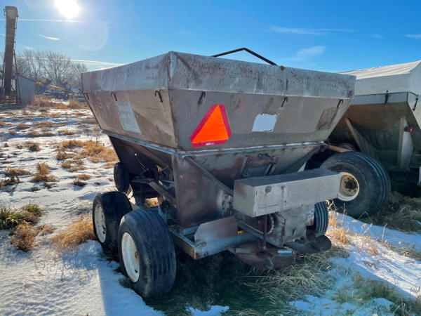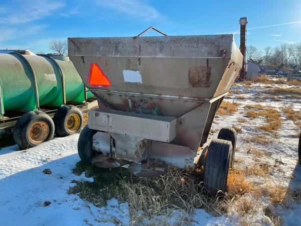 Tyler Dry Spreader (DPA0493), Tyler stainless steel dry spreader, twin spinner, PTO, tarp, 280/70R15 flotation tires.