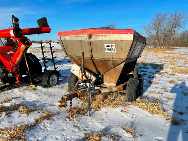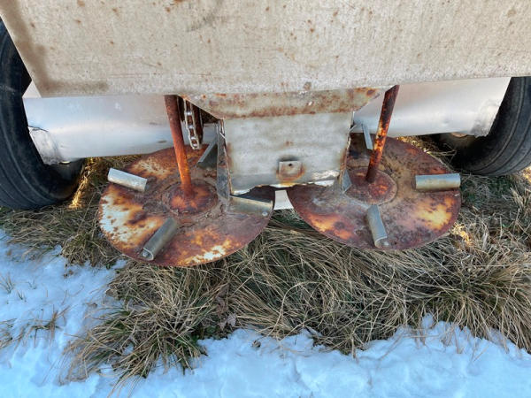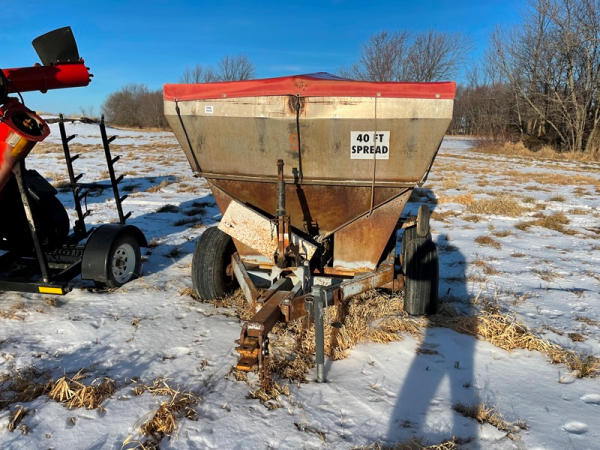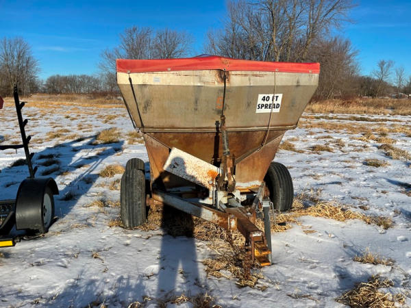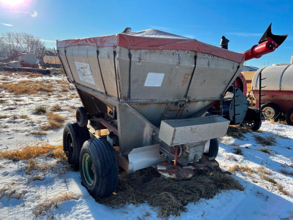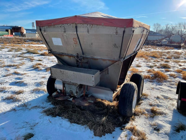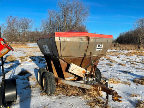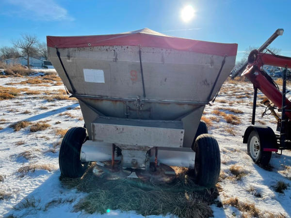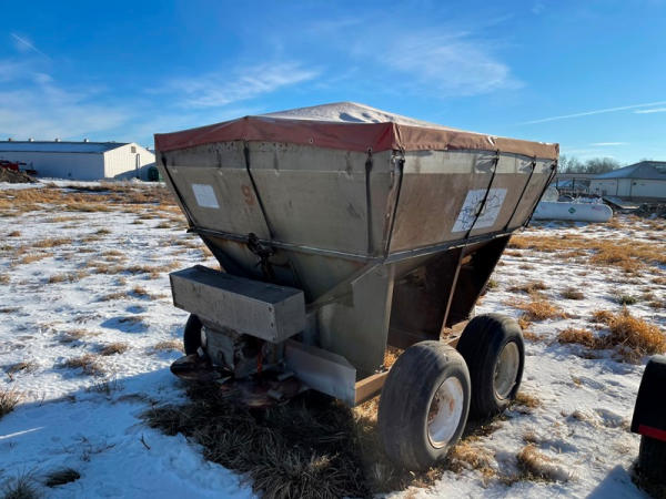 Tyler Dry Spreader (DPA0498), Tyler stainless steel dry spreader, twin spinner, PTO, tarp, 11L-15 flotation tires.