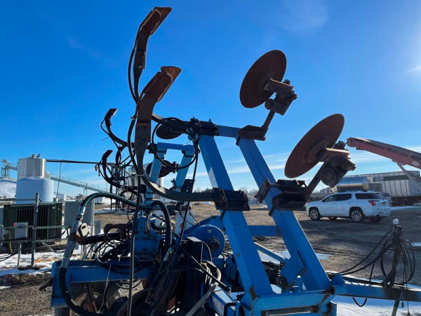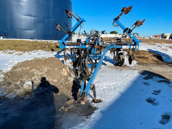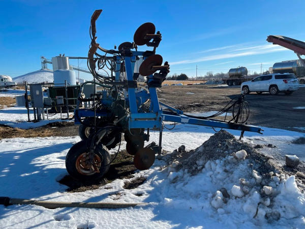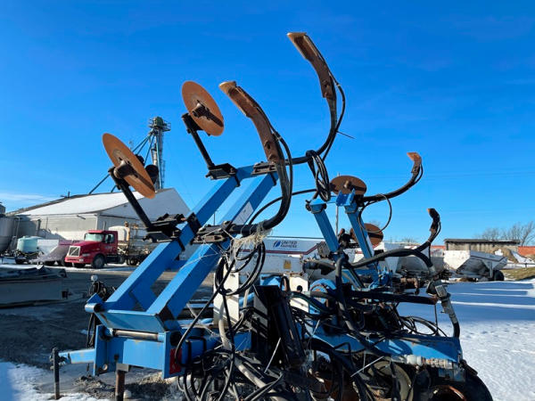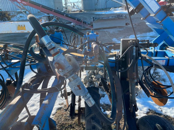 DMI 3100 Tool Bar (DPA0503), DMI 3100 9 knife conversion tool bar, coulters, Raven Super cooler, Dempster ground driven pump, hydraulic wings, rear hitch, 11L-15 flotation tires.