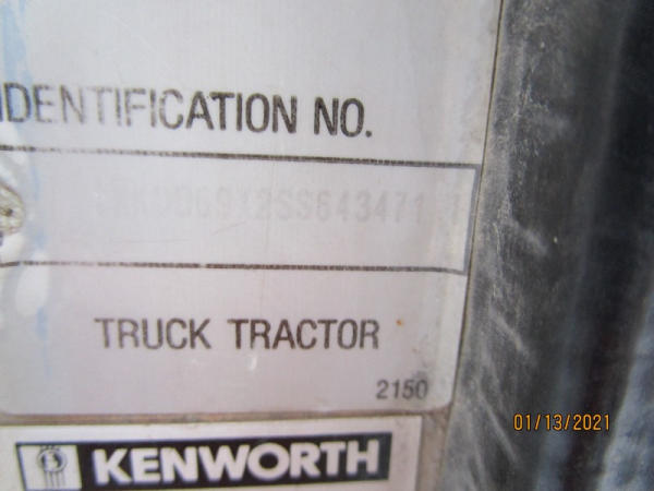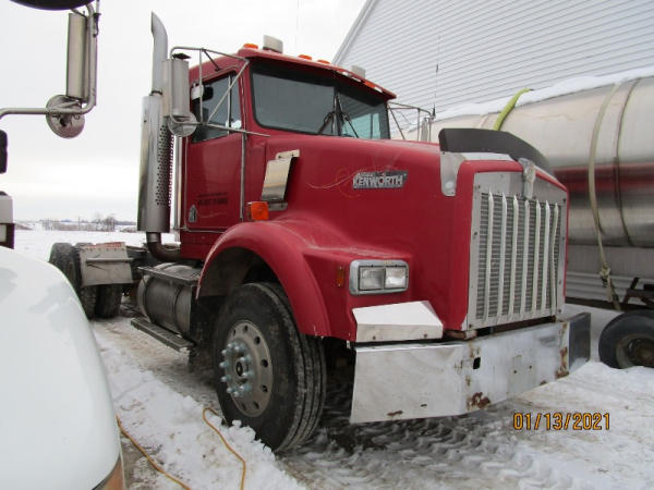 1995 Kenworth Truck (DR7542), Cummins N14 diesel engine, 18 speed transmission, air conditioning, heat, Am/Fm radio, cruise control, engine brake, tandem axle, full screw, air ride suspension, 11R22.5 tires.