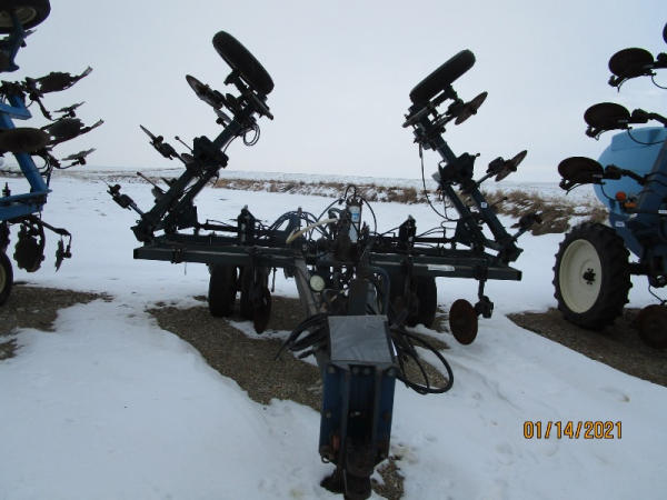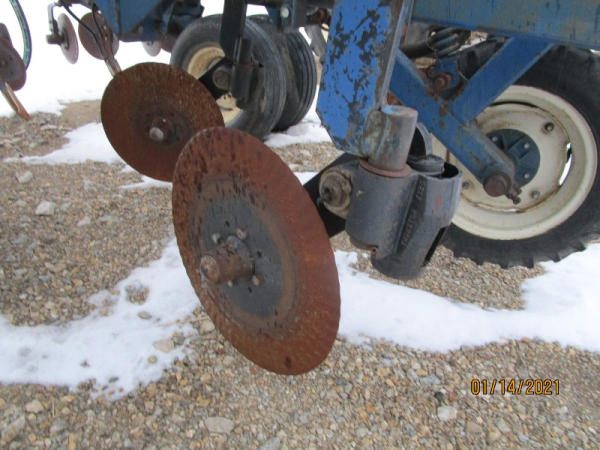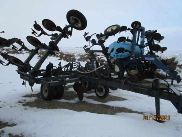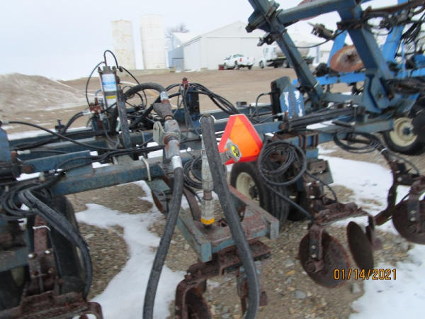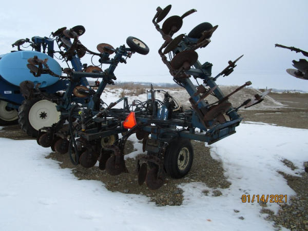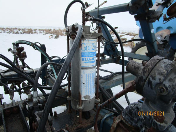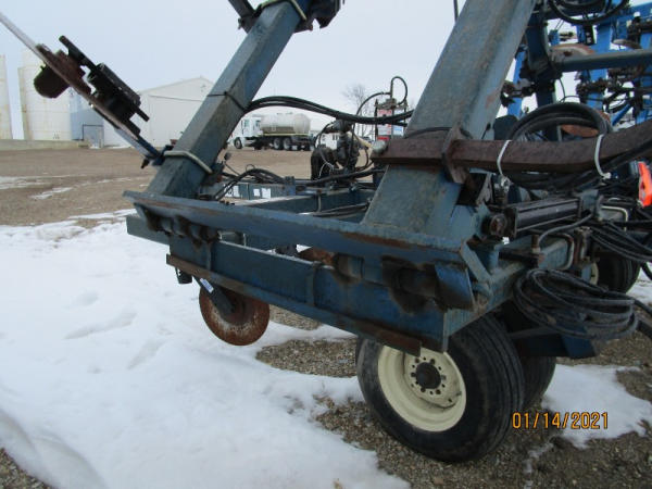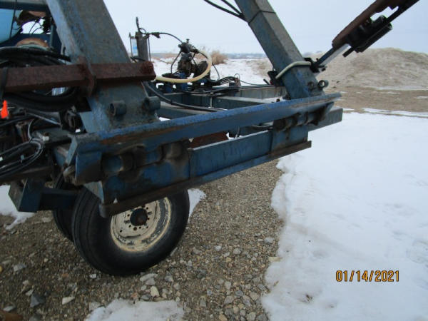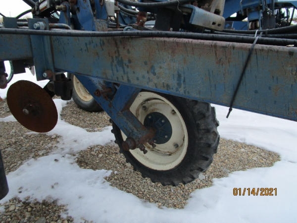 Blu Jet Tool Bar (DR7594, Unit 7905), Blu Jet 11 knife tool bar, coulters, double disc sealers, GDI 200 ground driven pump, hydraulic wings, rear hitch, flotation tires.