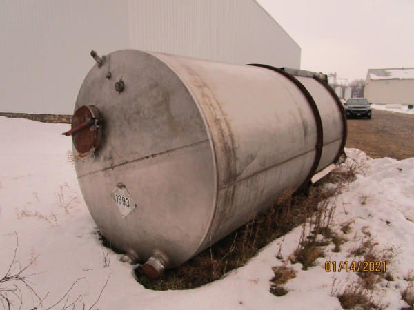 Liquid Tank (DR7595), Approx. 2,500 gallon vertical stainless steel liquid tank, dish bottom.