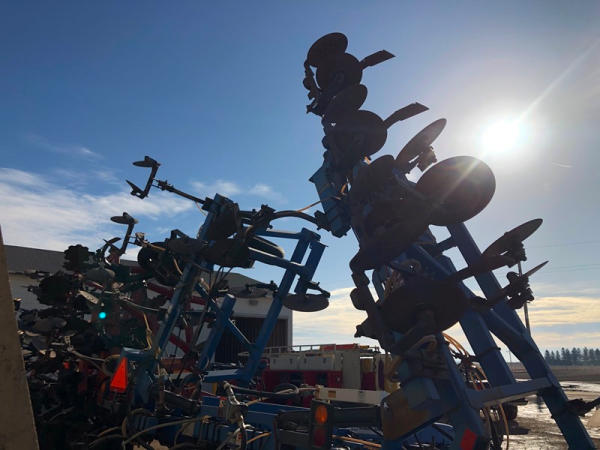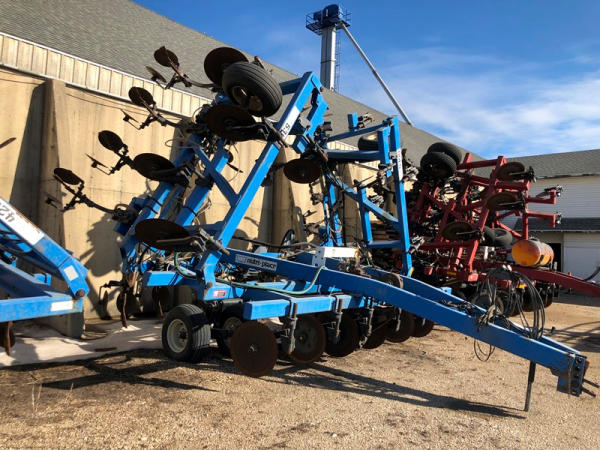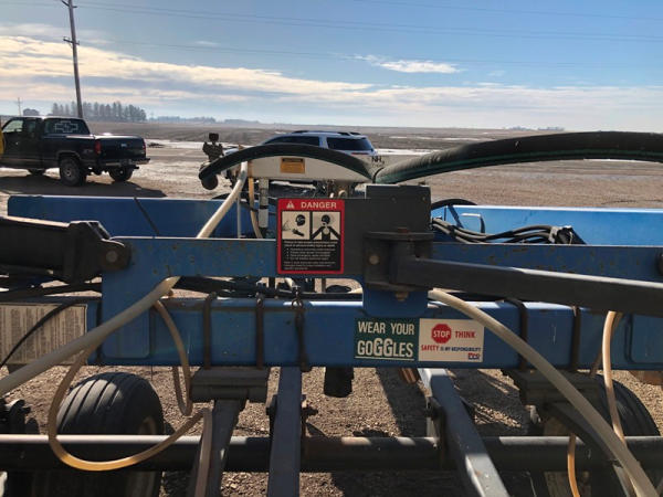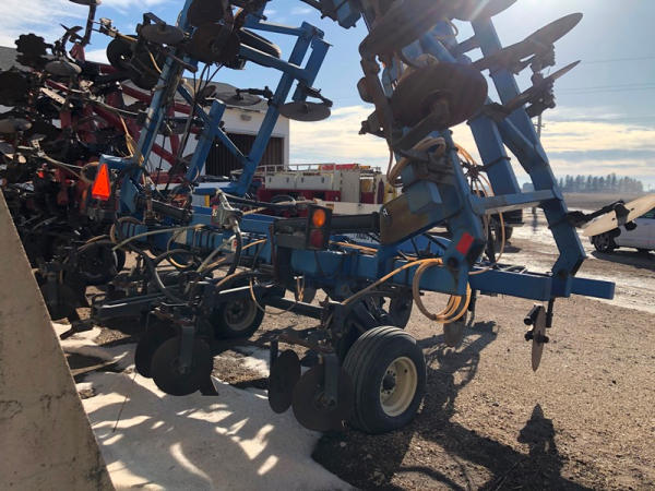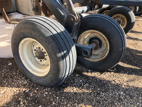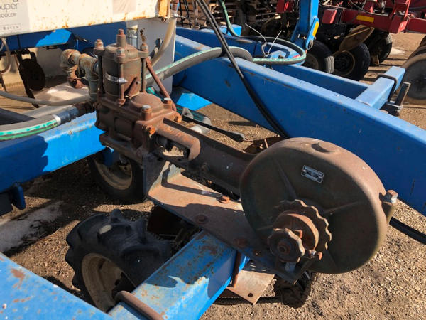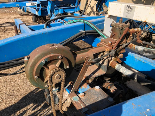 DMI Nutri-Placr 5300 Tool Bar (NP1401, Unit A2), 16 knife pull type anhydrous tool bar, coulters, double disc sealers, hydraulic wings, walking tandems, 11L-15 flotation tires, ground drive pump (pump needs work), Raven NH3 Super Cooler.