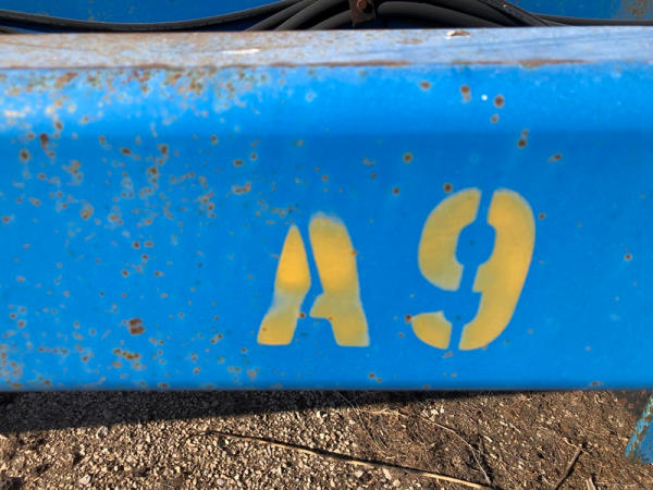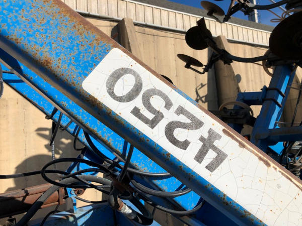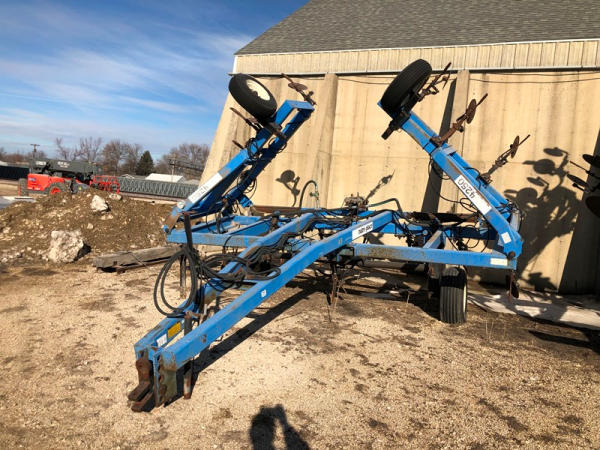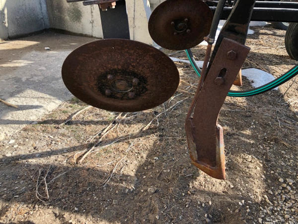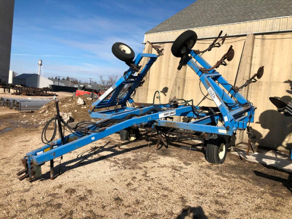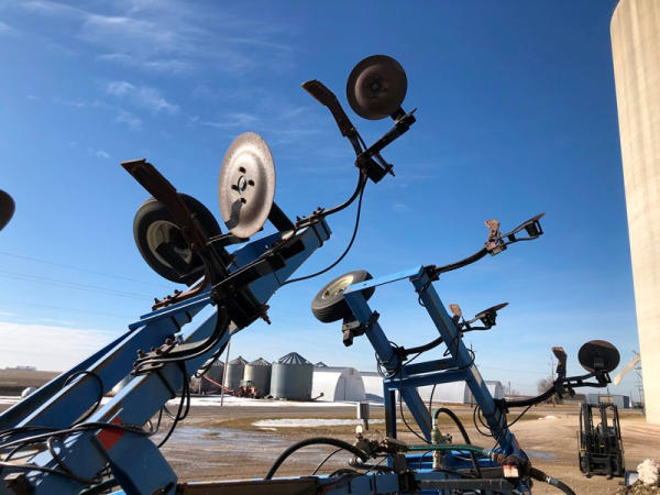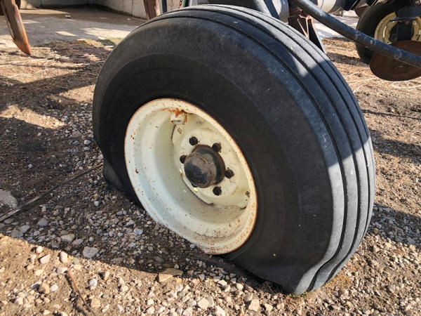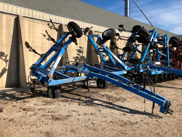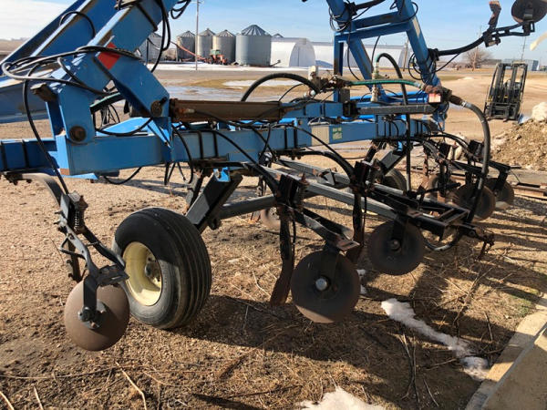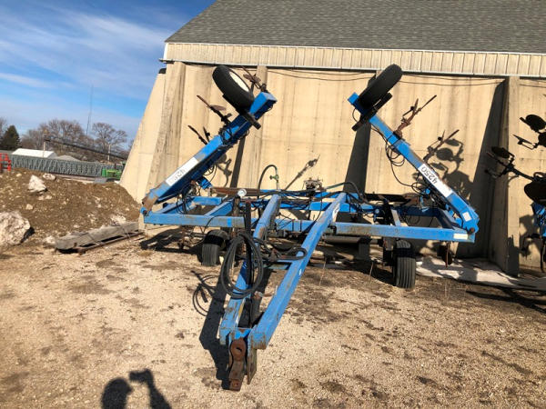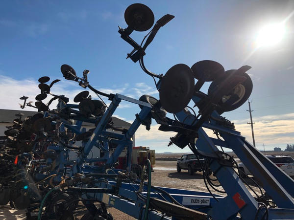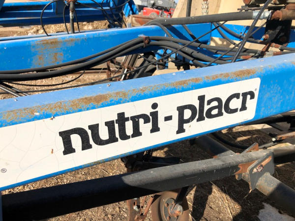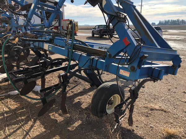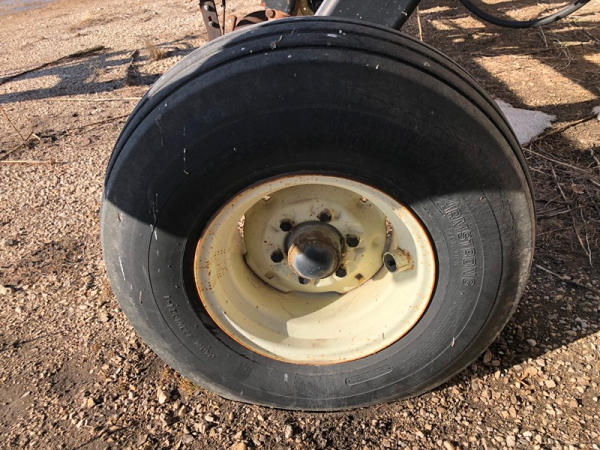 DMI Nutri-Placr 4250 Tool Bar (NP1402, Unit A9), 13 knife pull type anhydrous tool bar, coulters, hydraulic wings, 12.5L-15 flotation tires (1 flat tire).